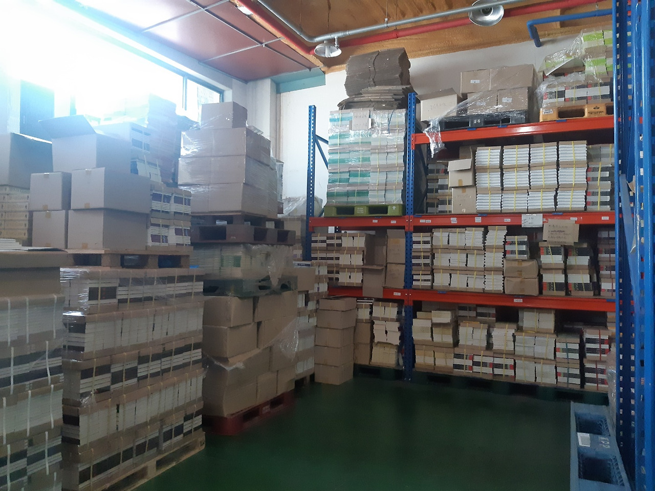 주소를 찾아가보니 간판이 보이질 않았다. 여기가 맞는지 긴가민가하며 도로 옆쪽 언덕을 내려다보니 책이 가득 쌓인 팔레트가 보였다. 힐데와 소피가 찾은 R창고였다. 작은 학교 체육관 같은 규모의 창고 두 곳이 언덕 아래 서로 마주 보고 있었다. 일행은 창고 안에 컨테이너에서 나온 직원 분들과 간단한 인사를 하고, 창고를 둘러보기 시작했다. 책이 쌓여있는 모습을 꽤 봤다고 생각했는데 이런 식의 책 더미는 처음이었다. 같은 종류의 책이 몇 백권 씩 뭉쳐서 쌓여있었다.