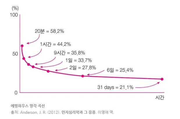 (출처: 네이버 지식백과) 에빙하우스 망각곡선