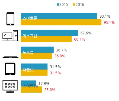 역시 스마트폰이 이용률이 크게 앞서고 있다.