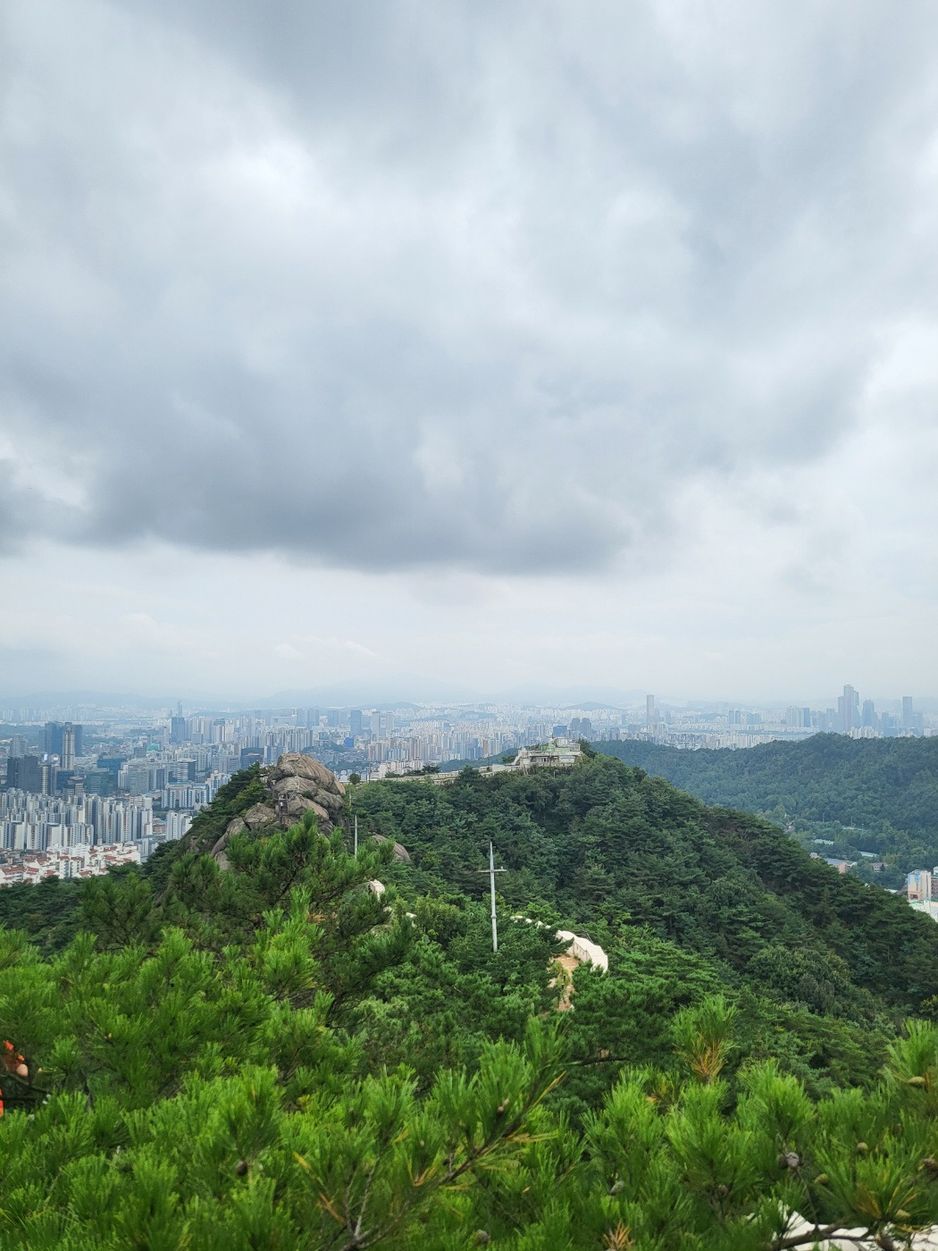 첫 번째 산은 인왕산이다. 인왕산 하면 인왕제색도이다. 인왕제색도는 한자로 仁王霽色圖 이렇다. 제자가 비 그치다는 뜻이다. 그래서 비가 그친후의 인왕산 풍경이라는 의미이다. 이건희 컬렉션의 1호라고 소개가 나오던데 이 그림을 그릴 때 정선이 76세였다. 조선은 영조시대이고 1751년이니까 영국에서는 산업혁명이, 프랑스에서는 프랑스혁명이 곧 일어날 때이다. 마침 어제는 비도 좀 오고 구름도 끼여서 인왕제색도 정도까지는 아니지만 비 그친 후의 상쾌함이 산에 가득하다.