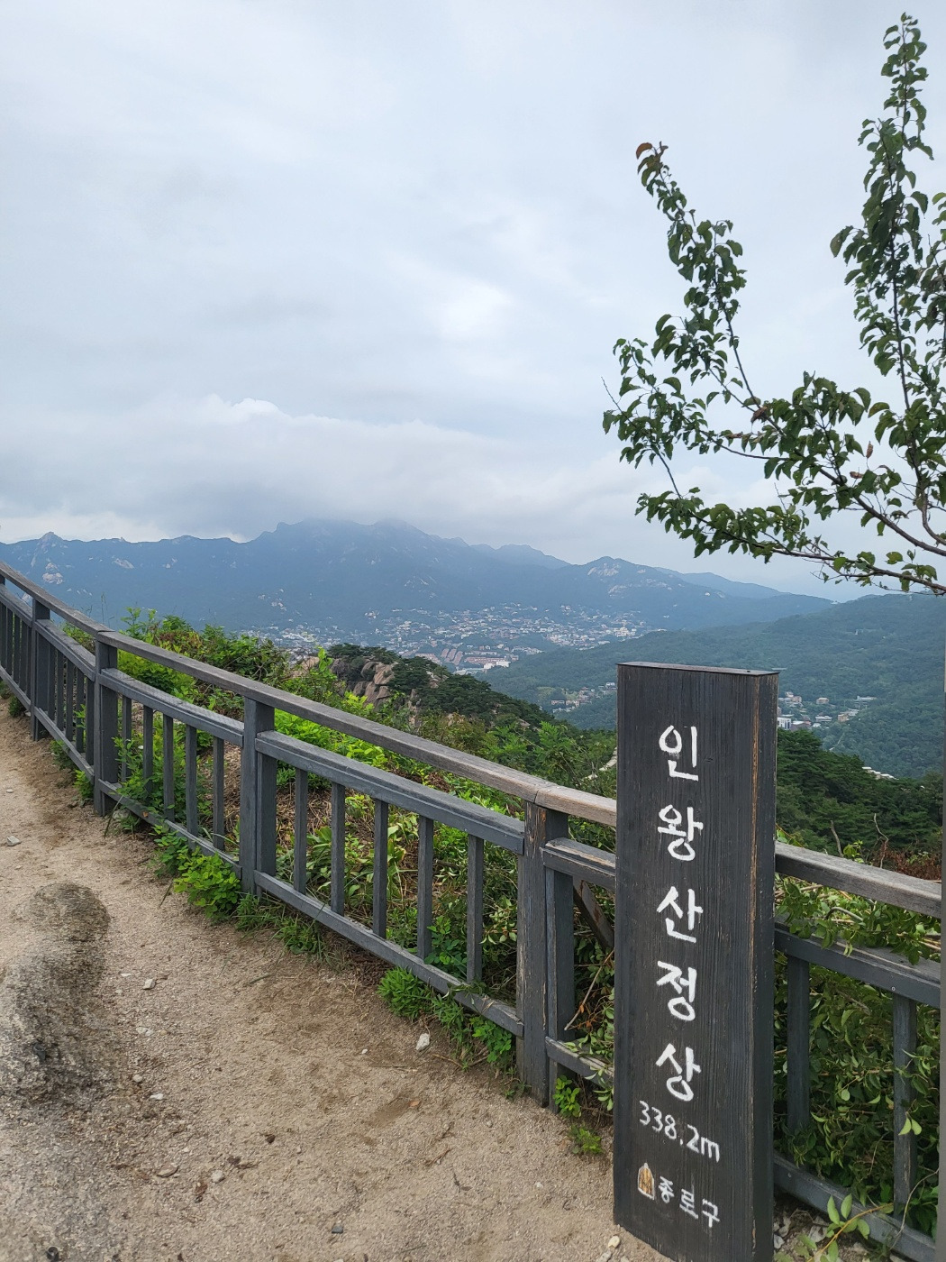 인왕산 정상 338미터다. 멀리 북한산이 지척이다.