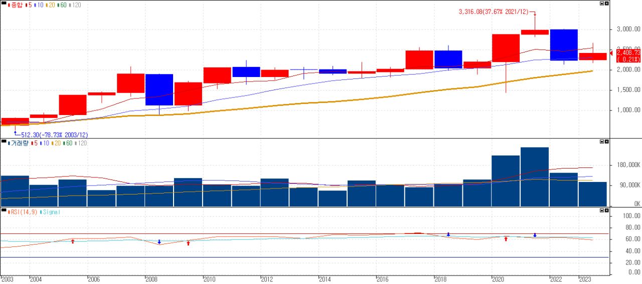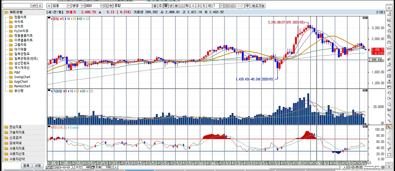 올해 조금 반등하더니 다시 2400까지 내려왔다.
