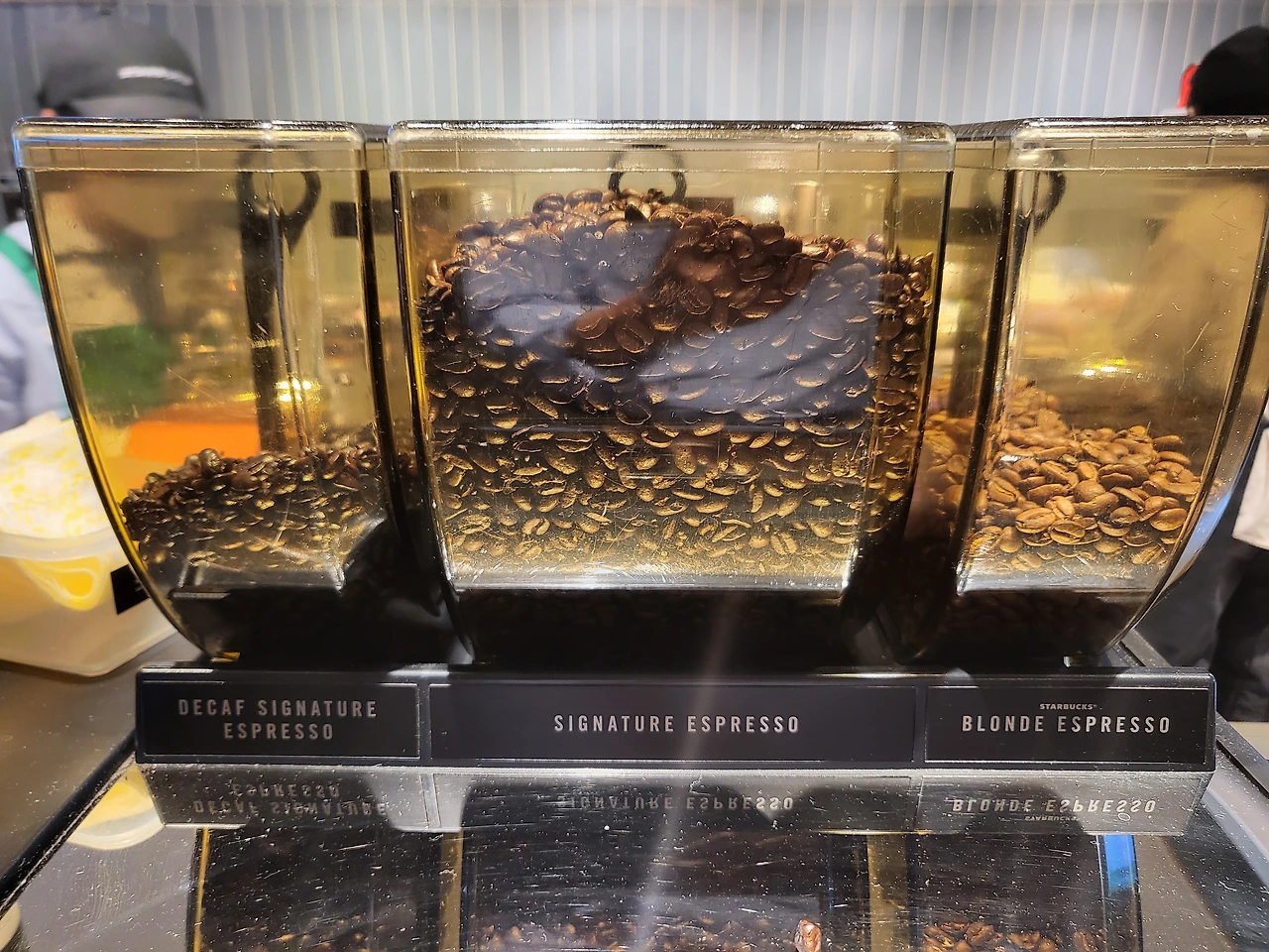 기존의 대표 원두인 로스트에스프레소(시그니쳐인 강배전 원두), 디카페, 그리고 블론드 에스프레소다.