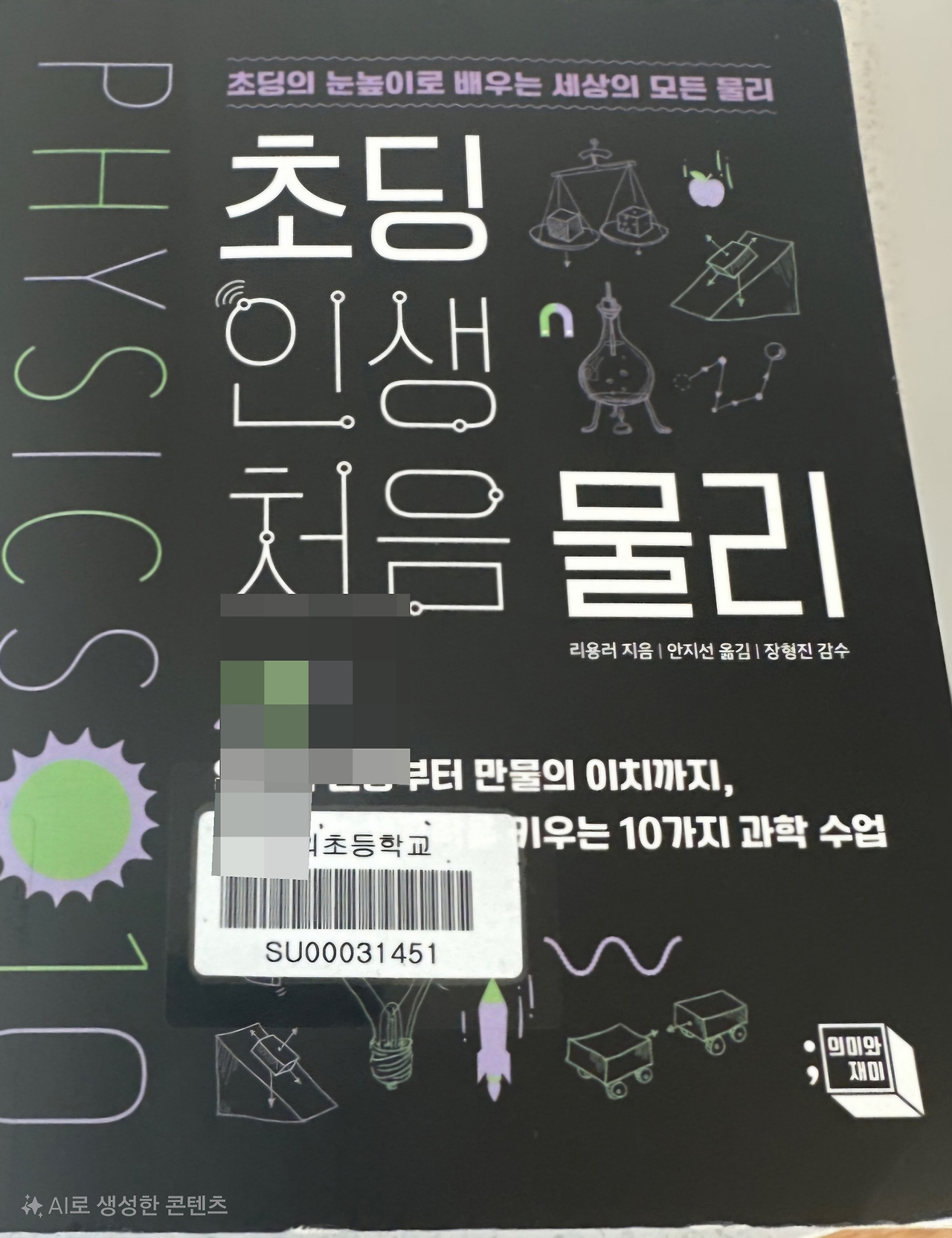 ㅡ제가 선생님께 물리학과가 뭐냐고 물어봤는데, 선생님이 도서관에서 "초딩 인생 처음 물리"라는 책을 빌려서 보라고 하셨어요. 제가 빌려왔거든요. 그런데 재밌기는 한데 어려워요.