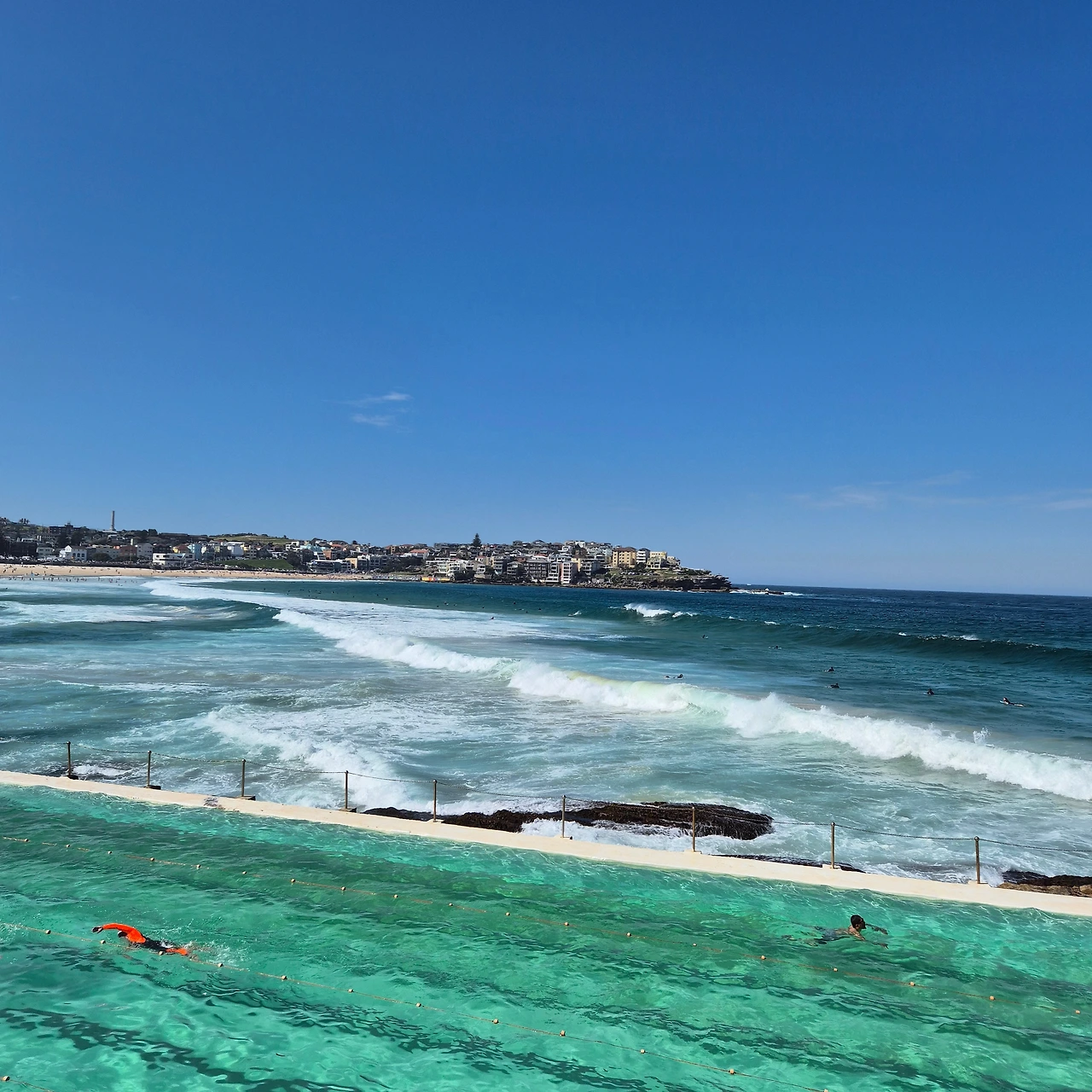 본다이 비치가 시작되는 어름에 아이스버그 수영장Bondi Icebergs Swimming Club이 있었다. 바닷물을 담아 놓은 야외 수영장. 가슴까지 저려오는 차가운 물을 견딜 수 있었지만, 입에 들어오는 짠물은 도저히 받아들일 수 없었다. 익숙하지 않은 탓에 오래 있을 수가 없었다. 1인 10달러의 입장료를 내고 들어왔는데 사진이나 몇 장 찍고 나가야 하다니. 아쉬웠지만 숙소에 있는 수영장에서 실컷 즐긴 것으로 퉁치기로 한다.