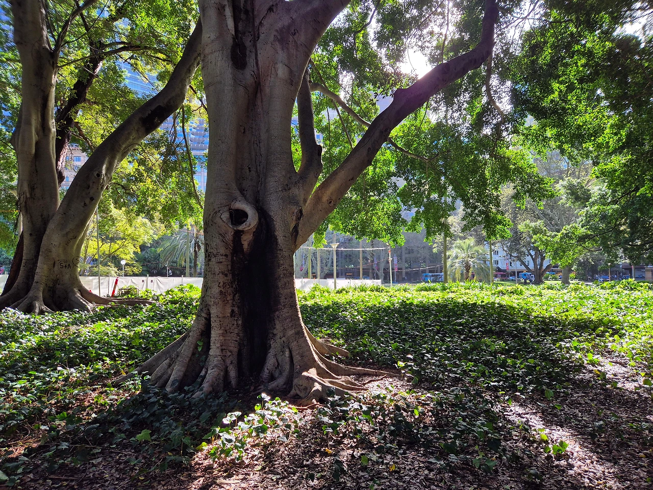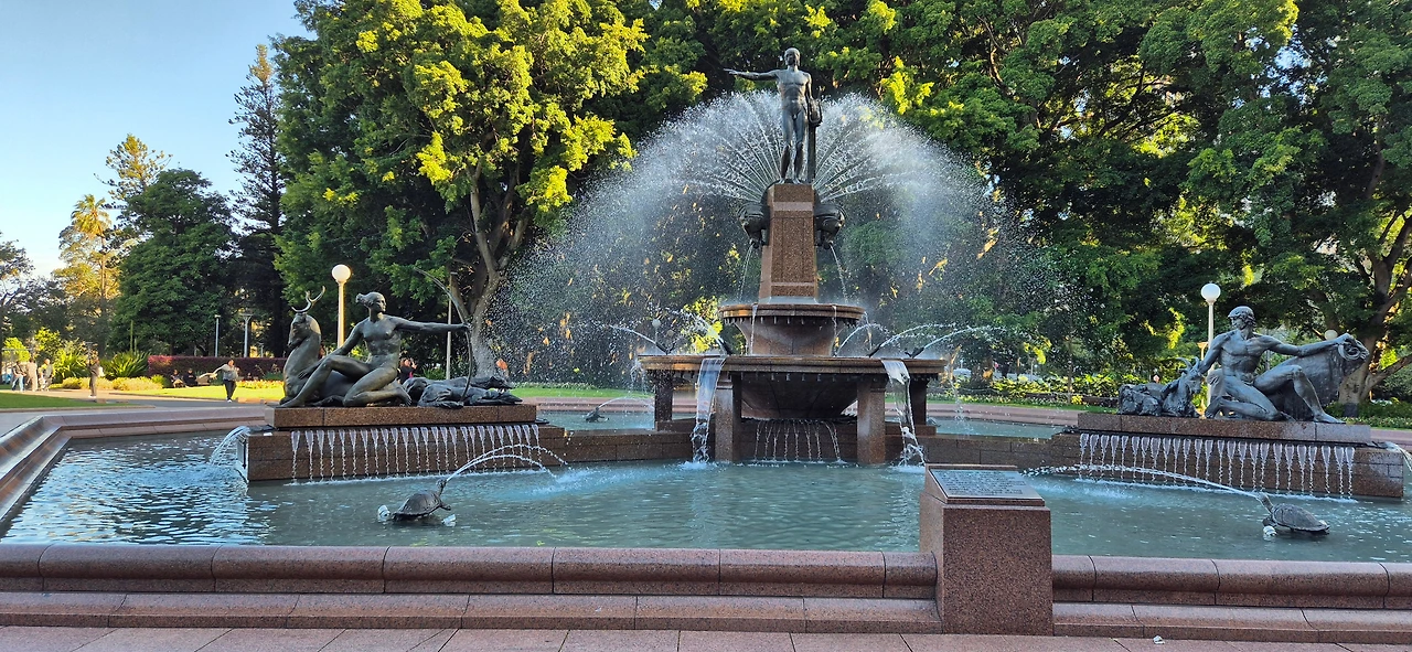 하이드 공원은 시드니 동쪽에 있는데 시드니에서는 가장 규모가 클 뿐만 아니라 1810년에 조성된 역사가 있는 공원이다. 넓은 잔디밭과 즐비하게 늘어서 있는 노거목老巨木의 이야기가 촘촘하게 박혀 있는 곳. 가운데를 통과하는 도로로 인해 남북으로 나누어져 있다. 북쪽에는 아치볼드 분수Archibald Fountain, 나고야 가든Nagoya Gardens이 있으며, 남쪽에는 앤잭 전쟁 기념관ANZAC War Memorial이 자리 잡고 있다. 공원 주변에는 세인트 메리 대성당St Mary's Cathedral, 호주 박물관Australian Museum이 위치해 있어 공연과 연계하여 돌아보기 딱 좋은 곳이다. 비가 오지 않았으면 하루 종일 즐길 수 있었는데 지금 생각하면 아쉬움이 크다.