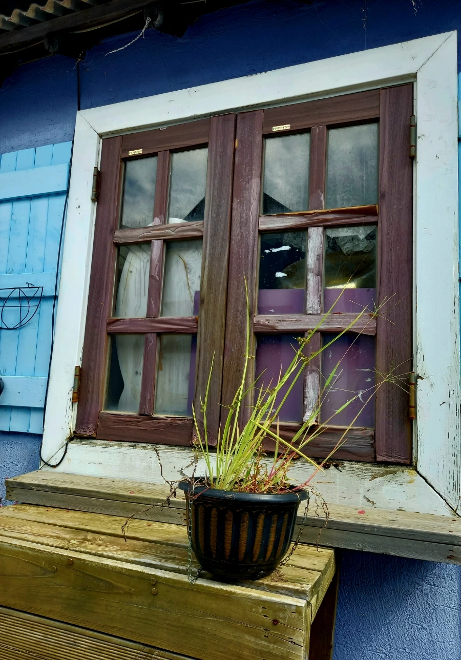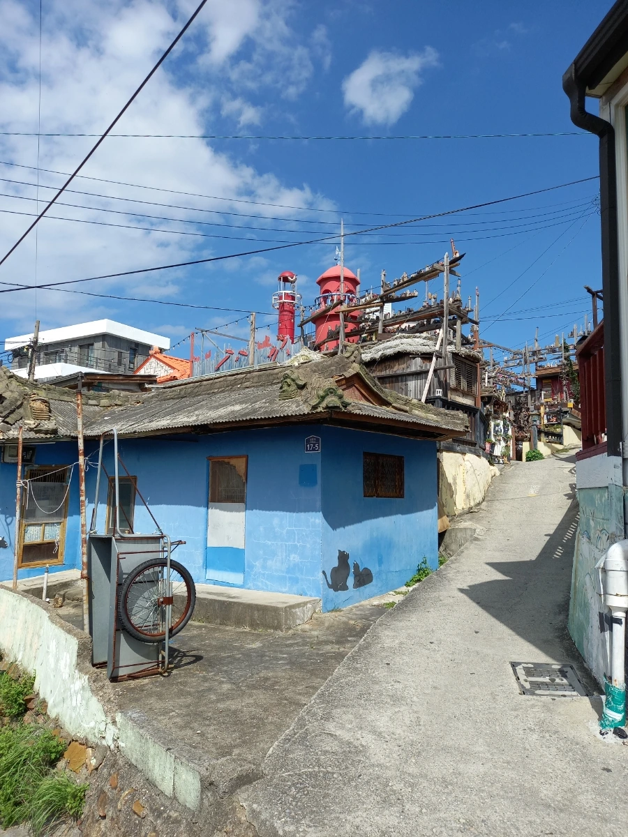 무언가 아쉬움이 남았는지 지나온 골목을 뒤돌아보다가 파란 옷을 입고 있는 작은 집에 빠져들고 말았다.