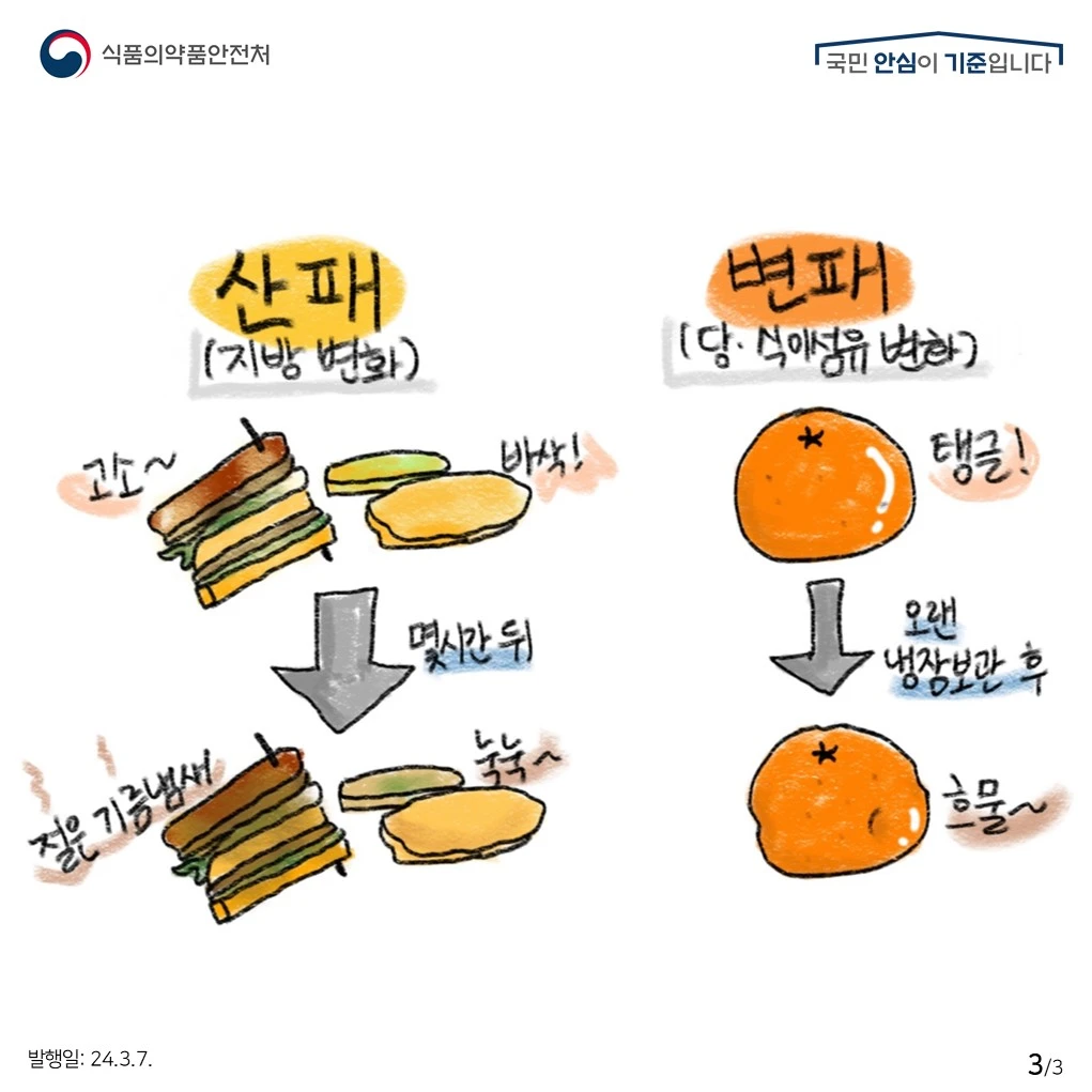 변패 - 식품에 무언가가 결합되어 고유 성질이 변질되는 것