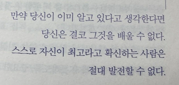 자신이 최고라 확신하는 사람은 절대 발전할 수 없다.