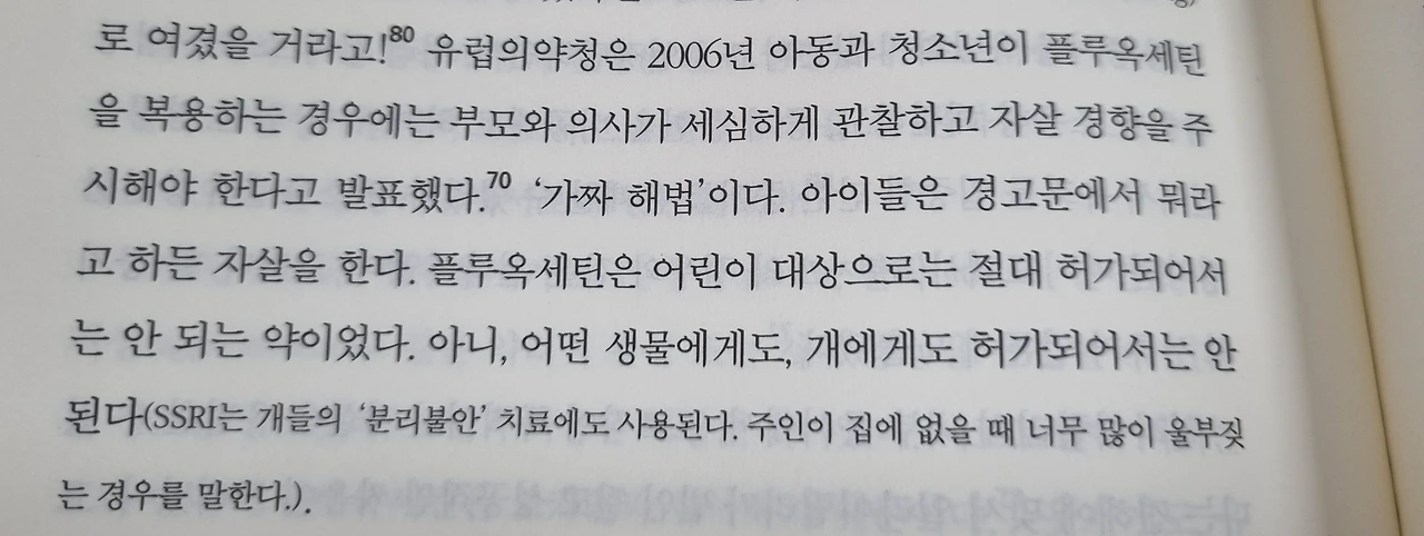 가짜해법이다. 아이들은 경고문에서 뭐라고 하든 자살을 한다. 플루옥세틴은 어린에게 절대 허가되어서는 안 되는 약이었다. 아니 어떤 생물에게도 개에게도 허가되어서는 안 된다. #SSRI