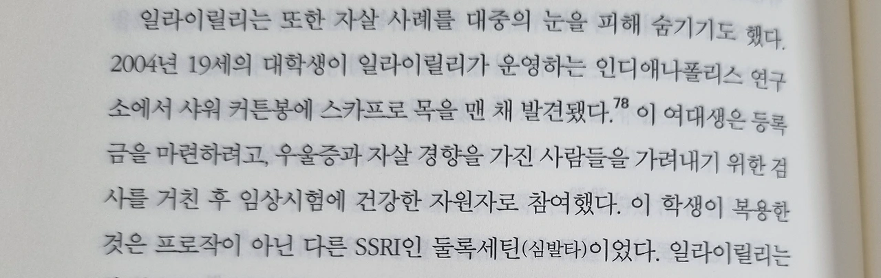 플루옥세틴 복용 후 자살시도와 폭력 행동에 대한 부작용을 덮는데 급급한 제약사
