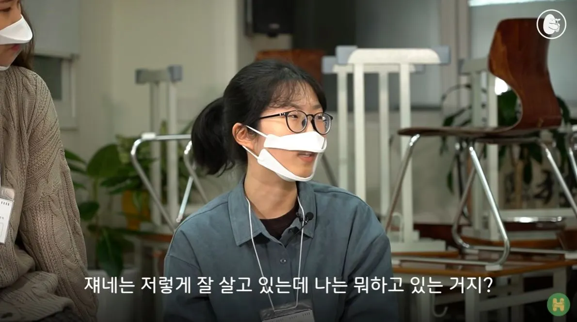 최저 : 저도 비슷한 것 같아요. 저는 사범대를 준비하고 있었으니까 졸업하면 임용 되고 선생님 되고 그런 생각? 대학에 입학하면 모든 게 다 끝날 거라고 생각한 거예요. 막연하게 대학 입시 끝나면 나도 탄탄대로 걷는다! (단체 웃음)