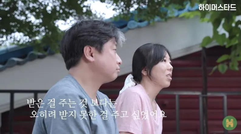 은숙 : 저희는 여기가 직장이면서 집이면서 가정이기도 한데 저희 아이를 낳으면 또 다른 가정을 만들어야 되거든요. 두 개의 가정이 만들어지면 아무래도 방금 남편이 말한 것처럼 사랑이 더 분산되잖아요. 그러면 또 아이들이 마음속에 또 다른 또 결핍이 생기지 않을까요? 그런 마음도 있고 사실은 아이들 아들 여섯을 키우는데 사실 진짜 힘들어요. 힘든데 내 아이까지 낳으면 제가 완벽하지 못할 것 같아요. 어느 한 곳을 선택하라고 한다면 그냥 저는 지금 저희 여기 아들들하고 사는 것을 이제 선택을 한 거죠 제가. 그래서 (남편한테) 좀 미안한 마음도 있죠.