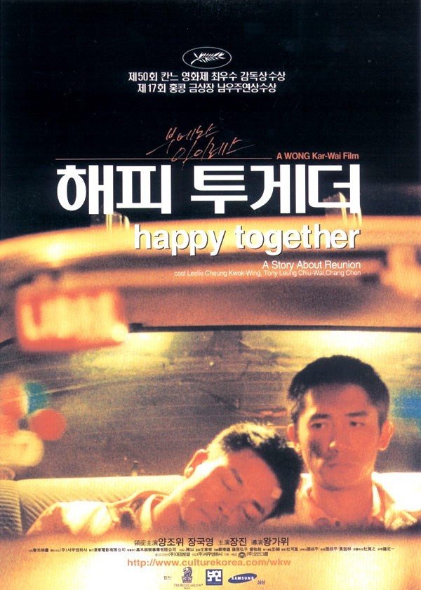 중년 세대 중 영화 좀 보고 좋아하던 사람 가운데 홍콩 영화, 그중에서도 왕가위의 영화 한 두 편 안 봤던 사람은 거의 없을 것이다. 허무하고 불안한 청춘, 어긋나는 시간과 사랑, 감각적 영상과 색채감, 장면과 딱 떨어지는 음악들이 그때의 젊은이들이 왕가위에게 열광한 이유리라. 한 때의 젊은이들이 하루끼 소설에 열광했던 것처럼. 왕가위 영화 중 가장 대중적이고 흥행작이었던 <중경상림>, <열혈남아>보다 <해피투게더>가 더 좋았었다. 지금은 <동사서독>을 그의 최고작으로 꼽지만 아직 청춘이었을 땐 <아비정전> <화양연화> <해피투게더>를 그의 최고작으로 꼽기도 했다. 대게의 동성애 영화가 '소수자 인권, 성취향 각성, 편견과 차별'등의 동성애 주제 코드를 약간씩이라도 담고 있다면 이 영화는 그런 거 싹 빼고 그냥 '사람, 사랑'의 시선으로만 다룬다.