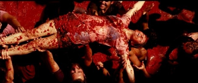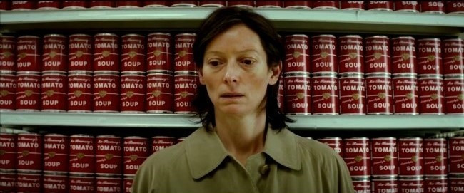 이 영화는 소재, 내용, 배우들 연기 외에도 인물의 심리나 상황을 색으로 표현하는 색채 언어도 아주 좋다. 영화 속에서 '붉은색'은 불안, 복수, 파괴, 분노 같은 부정적 감정을 표현하는 장면 적재적소에 아주 적확하게 잘 쓰인다. 특히 첫 장면 토마토 축제 장면이 압권이다. 으깨진 토마토들은 축제의 열정과 즐거움이 아닌 전쟁 속 혈투와 쏟아지는 피범벅같이 보이고 축제 인파에 들어 올려진 에바의 표정과 분위기는 어떤 제의에 끌려가는 희생물 같다. 화면이 바뀌자 축제의 주인공이었던 토마토는 마트의 깡통 통조림 대량 진열대로 가 있고 그 앞에는 축제 인파들에 둘러싸여 헹가래 쳐지던 에바가 멍하게 서 있다. 축제 속 토마토가 광란의 축제 뒤에는 깡통 통조림으로 갇히듯 에바가 여행지에서의 도취로 얼떨결에 선택한 결혼 속엔 밀봉된 고통이 기다린다는 복선일까?