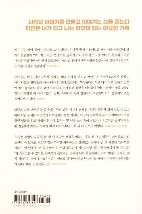 요즘 한두 챕터씩 새로 읽고 있는 책에는 '자기 얘기가 없는 글의 허술함'에 관한 글이 나온다. 이론과 간접 경험을 무시하는 게 아니라 자기 경험, 공부 하나 없이 어디서 읽은 얘기, 들은 얘기만 하고 내게 체화되지 못한, 내가 이해하지 못한 머릿속 글의 한계를 지적한다. <쓰지 않으면 죽을 거 같아서>의 가장 큰 덕목은 생동감 있는 문장의 형식 안에 든 경험과 체험에서 나온 진실성일 것이다. 진실하다고 모든 걸 다 이해하고 공감할 수는 없듯이 이 책의 몇몇 이야기는 시대와 나보다 한참 더 산 어른의 연배에서 온 한계로 이해는 하면서도 내가 마주했으면 불편했을 그런 이야기도 있다. 아는, 가까운 사이에서의 온정과 인정, 박애심이 깃든 관심과 말이지만 그 당사자에겐 불편한 질문과 훈수로 들릴 수도 있겠다 하는 입장에서다. '연희야 연희야' '흰니' '그 아이'의 몇 장면에서 그런 불편함을 느꼈지만 다른 독자들은 그냥 따뜻한 장면으로 좋게 느끼고 넘어갔을 수도 있다. 달라진 시대상에 따라 부모, 친척 어른들이 '명절에 삼가야 할 질문'과 비슷한 맥락.