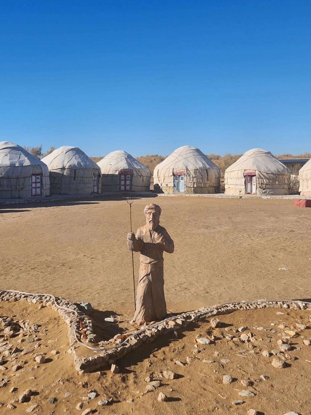 유르트는 텅텅 비어 있었다. 유르트는 천막 막사인 숙소이다. 한국의 방갈로로 이해하면 된다. 운영자의 말에 따르면 제철이 지나서 유르트를 찾는 손님이 드물단다. 손님들은 우리 같은 한국인은 거의 없고 이웃 나라인 카자흐스탄 사람들이 종종 사막 체험을 하려고 온다고 했다. 사막은 유목민족의 향수를 자극하는가보다는 생각이 들었다.