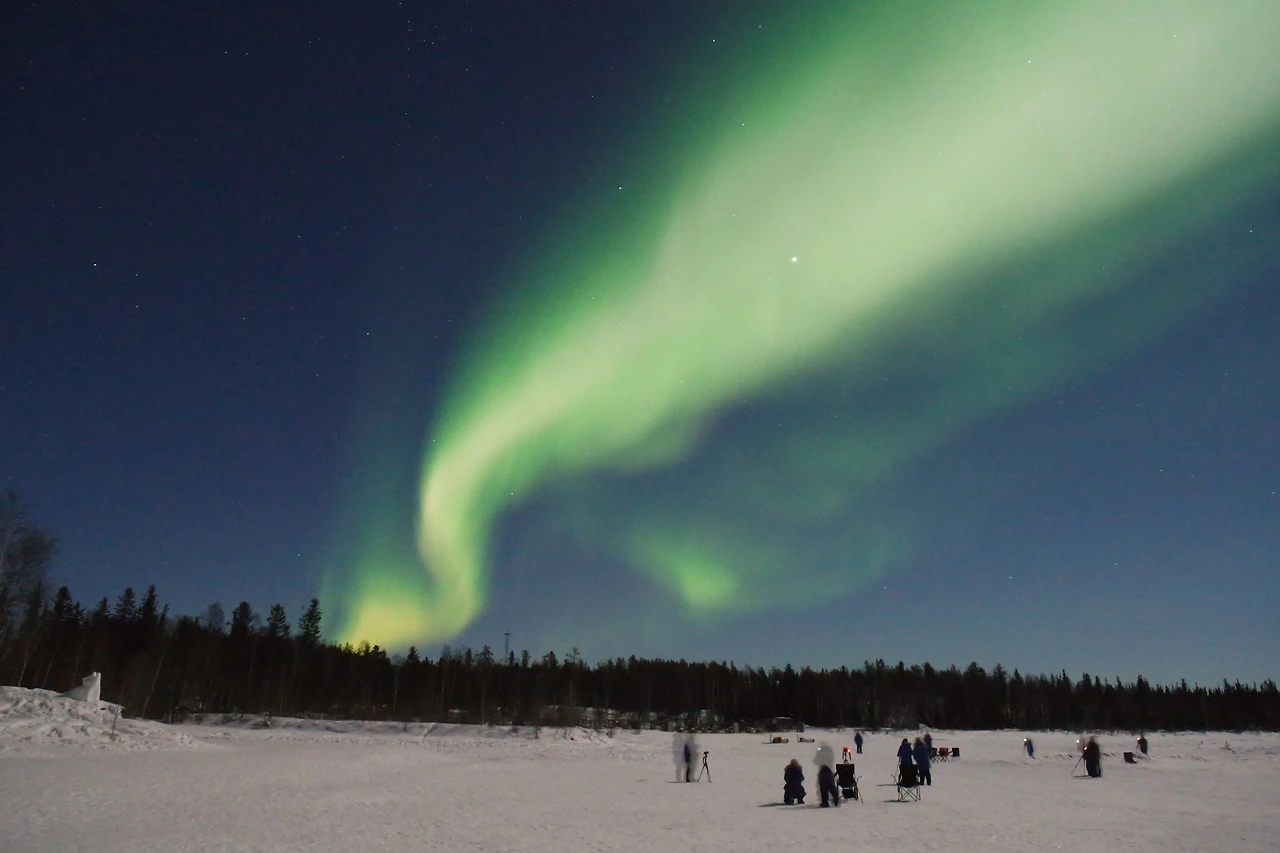 북극권과 맞닿은 북위 62도의 밤은 극한의 추위에도 불구하고 몹시 낭만적이었다. 하얗게 얼어붙은 호수는 보름 달빛을 반사해 은빛의 평원과도 같았고, 그 한가운데 낚시 의자를 펼치고 담요에 싸여 밤하늘을 바라본다.