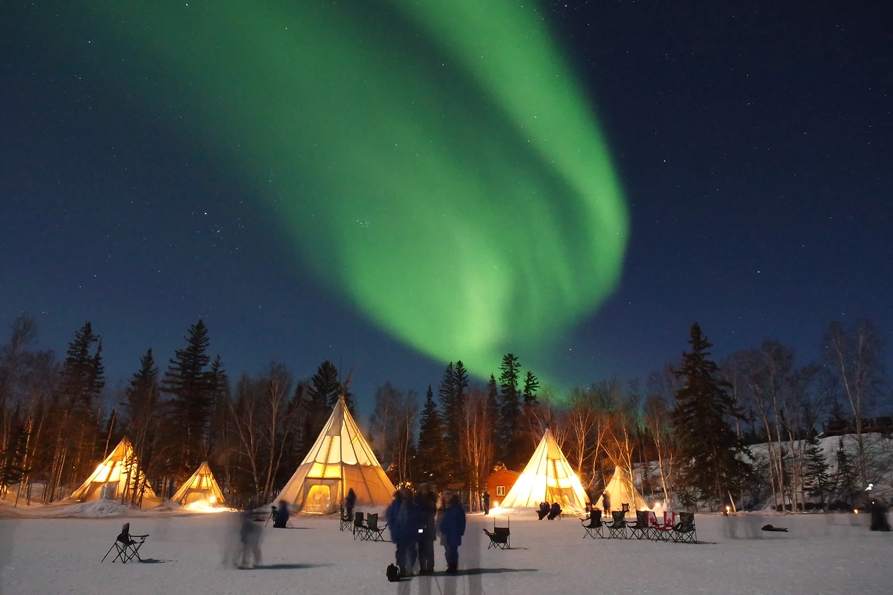 캐나다 노스웨스트 준주의 주도, 옐로나이프는 청명한 날씨와 시야를 가릴 것 없는 평평한 지형으로 세계에서 오로라를 가장 잘 볼 수 있는 지역 중 하나이다. 이 곳의 한 겨울은 영하 30도 이하로 내려가는 위험천만한 추위와 오후 3시면 캄캄한 어둠이 시작되는 진정한 밤의 왕국이지만, 바로 그 밤을 만끽하기 위해서 전 세계의 여행자들이 몰려든다.