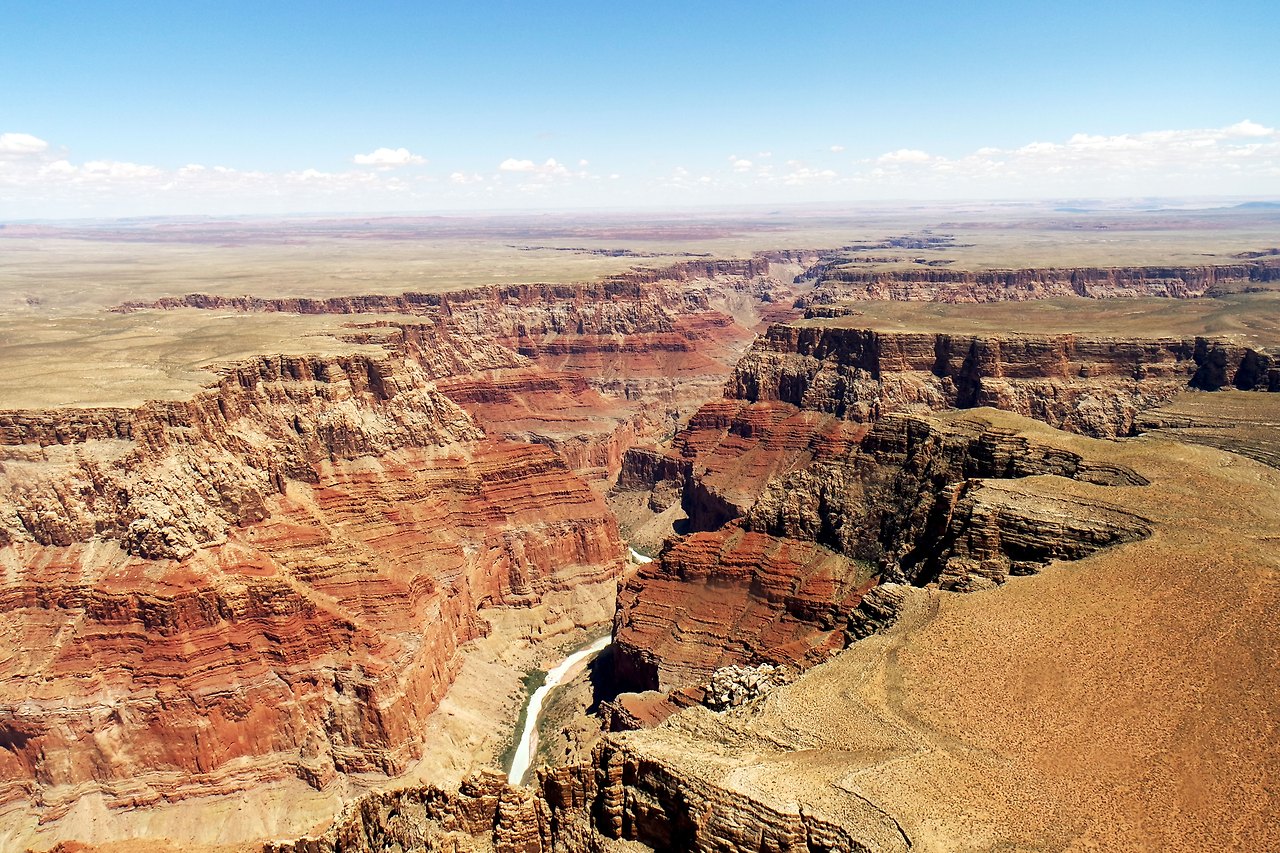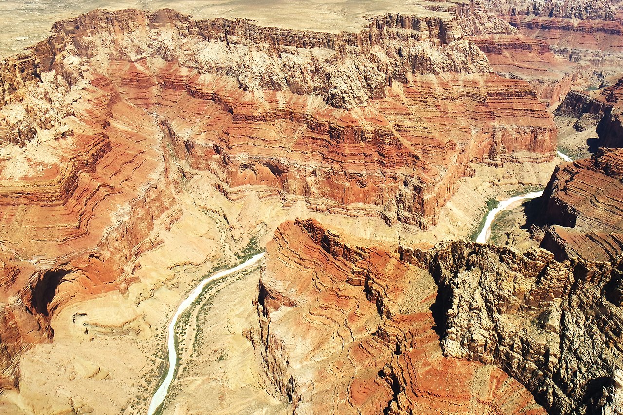 붕- 떠오르는 헬기를 타고 끝없이 펼쳐진 평평한 고원을 날다 보면, 어느 순간 하늘과 맞닿은 지평선으로 보였던 경계선이 싹둑- 베어낸 듯 땅이 끝나버린다. 캐니언에 들어선 것이다.