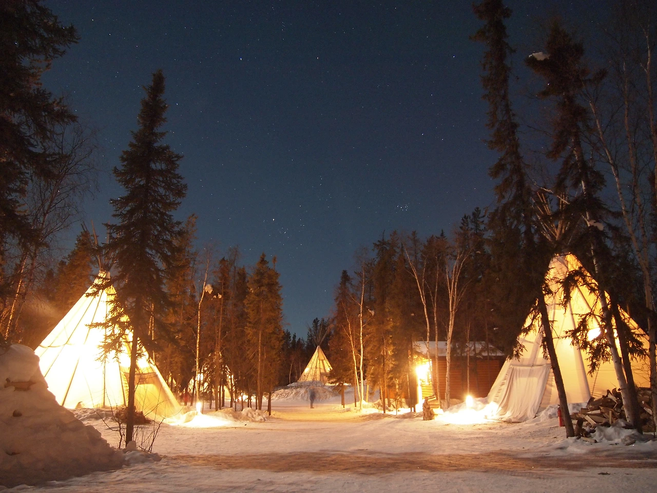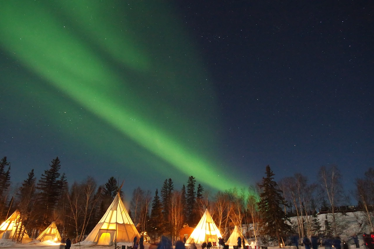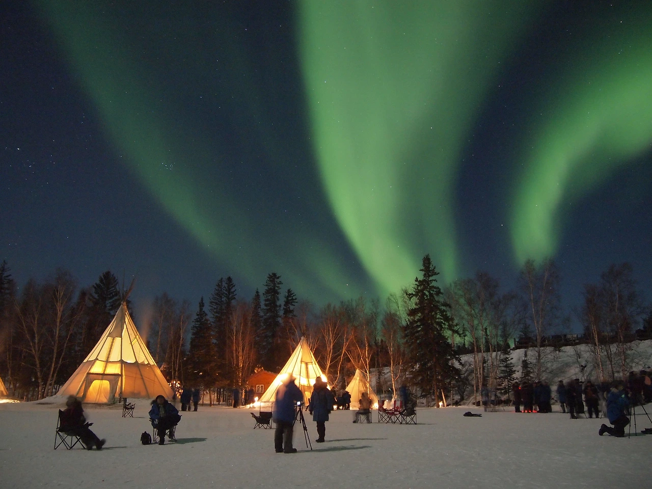 오로라 빌리지에 도착하면 국적별로 티피를 배정받는다. 티피는 원주민들의 전통 주거형태를 말하는데, 오로라가 뜨기 전 쉴 수 있는 휴게소 역할을 한다. 불빛과 함께 어우러진 모습이 무척이나 낭만적이다. 빌리지 스토어에선 삼각대를 대여해 주고 오로라 사진, DVD같은 상품들을 판매한다. 그러다 오로라가 뜨기 시작하면 티피 앞 쪽으로 긴 줄이 생기며, 오로라와 함께 사진 촬영 서비스가 시작된다.
