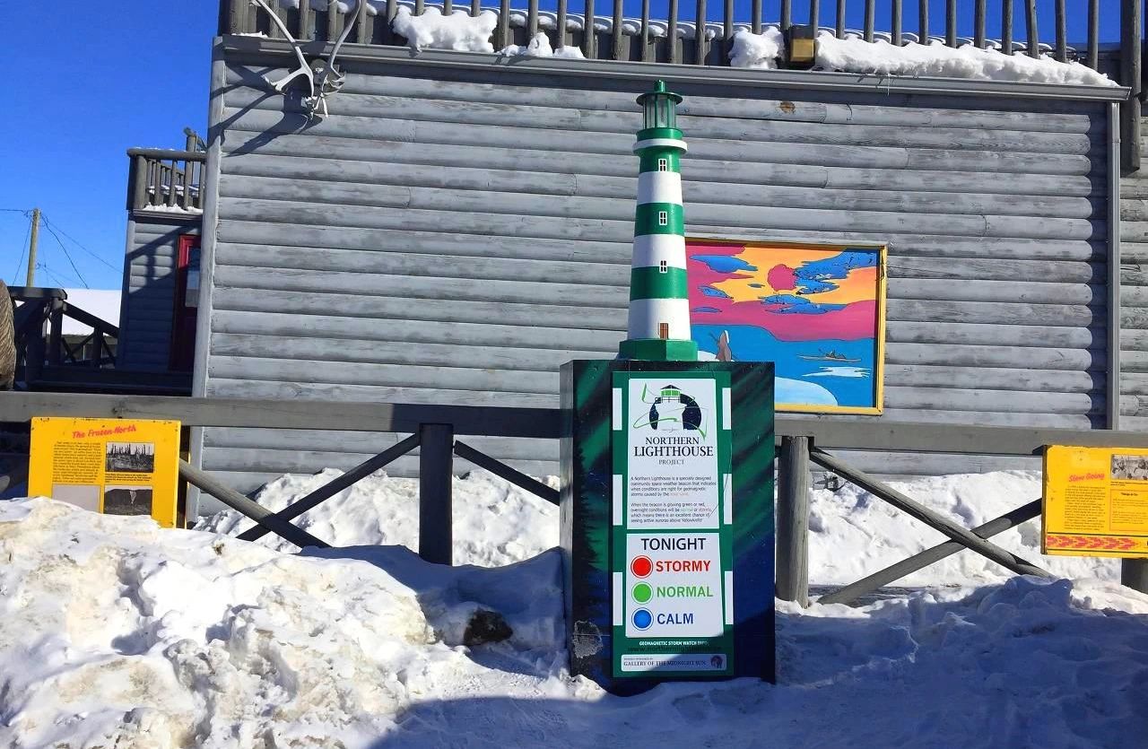 거리 곳곳에선 오로라 등대가 그날그날의 오로라 레벨을 알려준다. 파란색이면 오로라가 없이 조용한 하늘이고, 빨간색이면 오로라 폭풍이 부는 날이다. 다들 아침이면 등대 앞으로 가 조마조마한 마음으로 불빛을 확인하고, 설마하는 마음으로 하루종일 오가며 재차 등대를 확인한다.