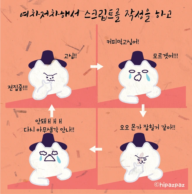 회사를 다니면서 기쁜 일, 속상한 일, 화나는 일 등 다양한 일들을 겪으신 경험 있으시죠? 저도 그랬습니다. 즐거운 일도 있었지만 힘들고, 괴로운 일도 있었죠. 그래서 이런 회사 생활을 어떻게 하면 조금 더 즐겁게 할 수 있을까 고민을 하다가 제가 겪었던 일들을 그림을 그려보기로 했습니다.