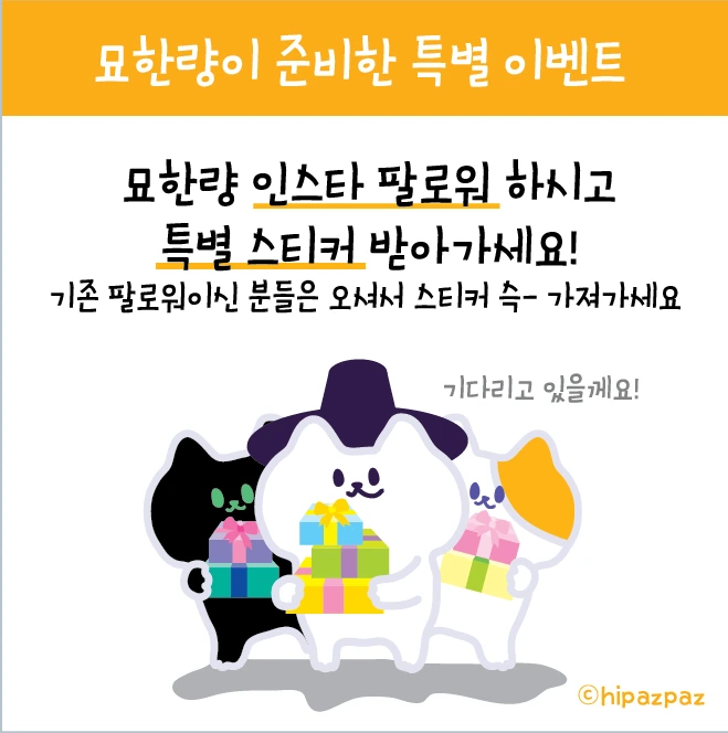 그리고 묘한량과 인스타 친구하고 스티커 선물 받아가세요~ 기존 팔로워이신 분들은 묘한량에게 말씀하시고 스티커 선물 받아가세요