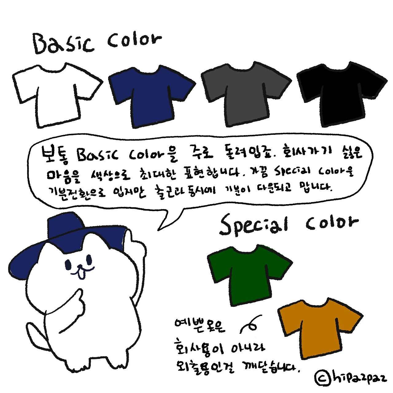어차피 회사로 출근하러 가는데 예쁜 옷이 무슨 소용 있겠어요.