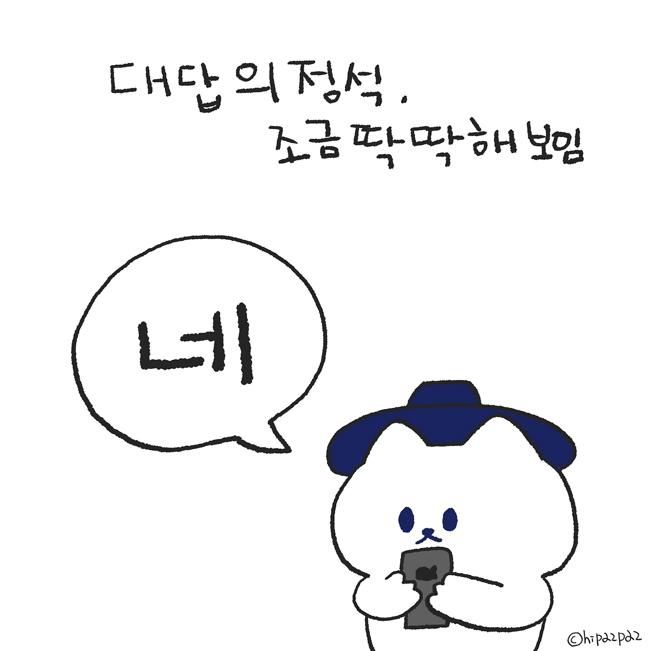 아무래도 넵이 아닐까 합니다. 하지만 나이가 한 살 두 살 먹어 감에 따라 물결(~)과 점점점(…)을쓰고 싶어 지는 건 왜일까요? 한국인은 해학과 흥의 민족이라서 그런가 봅니다.