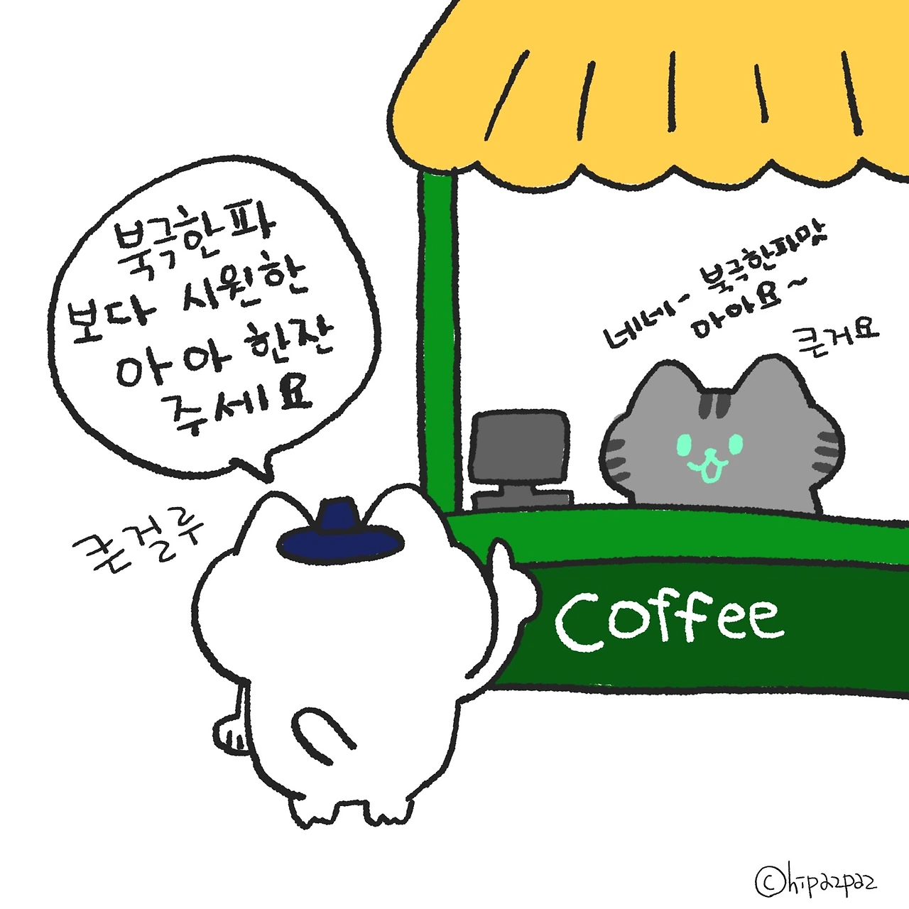 몸도 마음도 따뜻해지는 뜨거운 커피 아니면 역시나 천불 진압용 차가운 커피? 무엇을 주문하시더라도 오늘도 수고하는 나 자신에게 건네는 응원과 위로가 되면 좋겠습니다. 오늘도 화이팅 입니다!