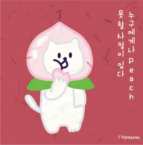 이번 디자인은 이러 피치 못할 사정을 그려보았습니다. 피치 못할 사정으로 Peach를 먹고 있는 모습입니다. 그리면서 달콤 상큼 부드러운 복숭아가 내내 생각났습니다.