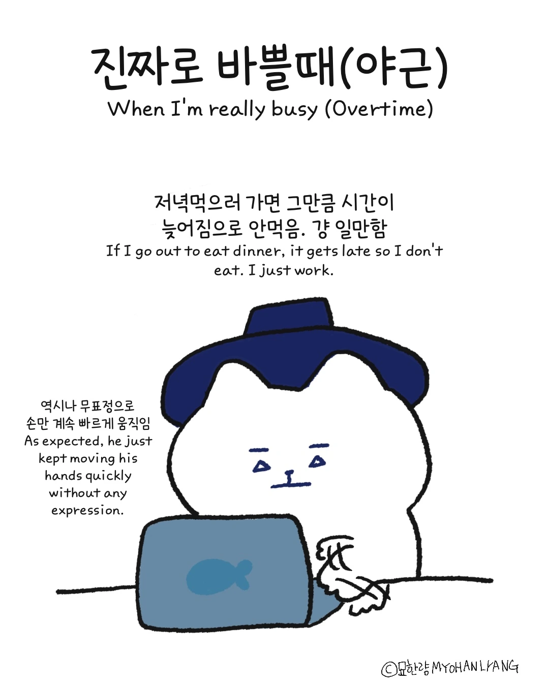 오늘은 직장 생활하면서 바쁠 때의 다양한 모습을 알아보겠습니다.