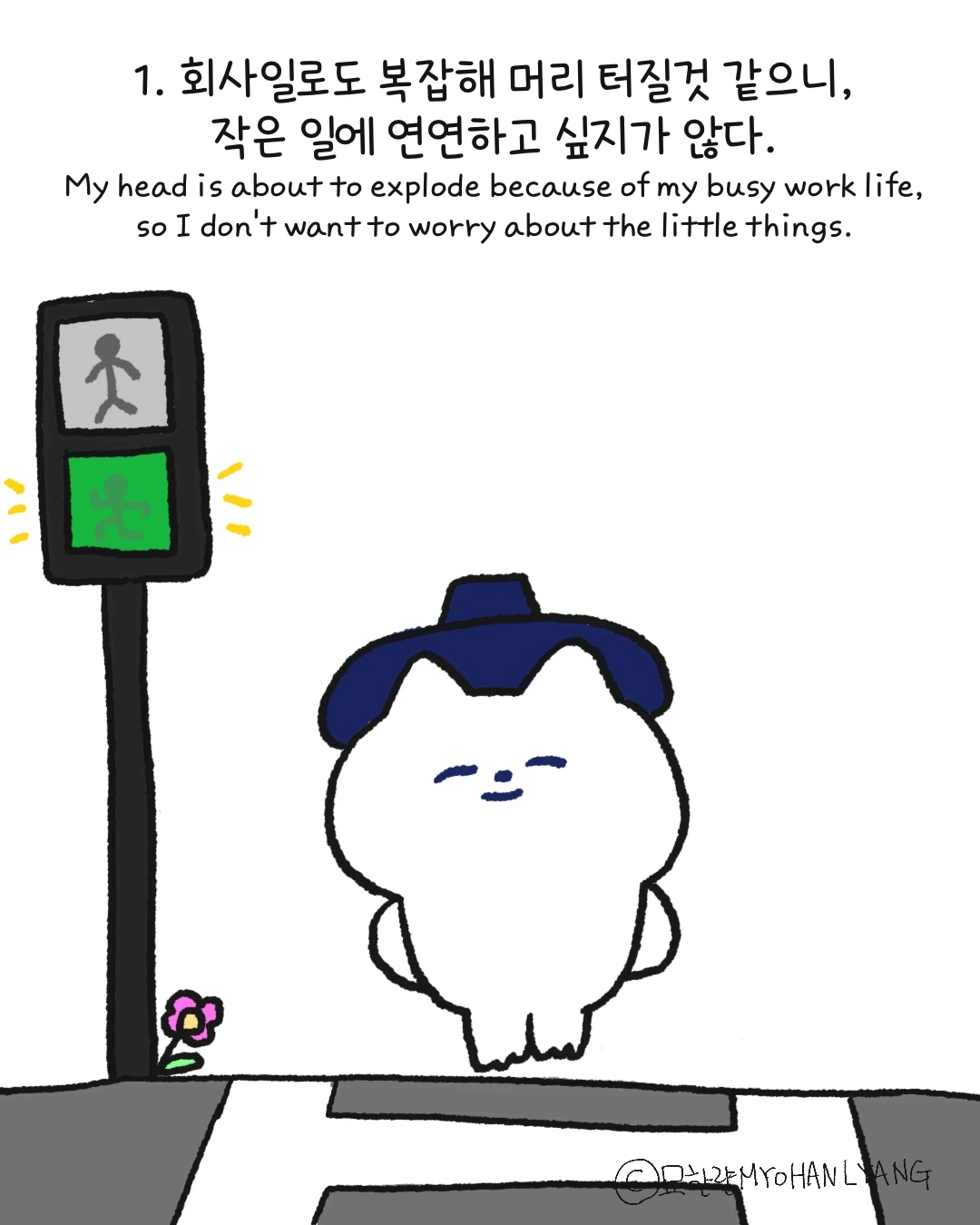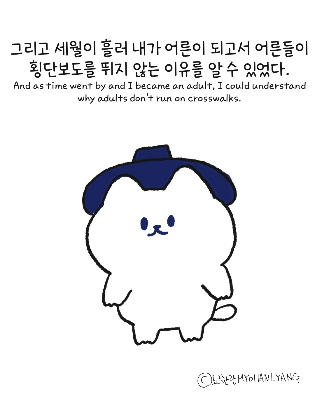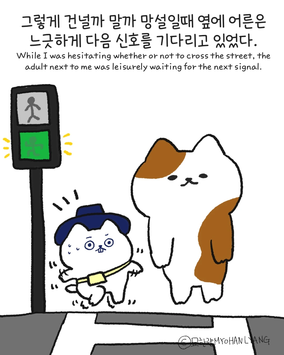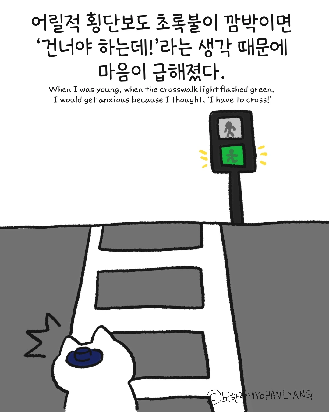 그리고 무엇보다 안전이 제일 중요하니 무리한 달리기로 횡단보도를 건너기보다 다음 신호를 기다리며 잠깐의 여유를 가져보는 건 어떨까요?