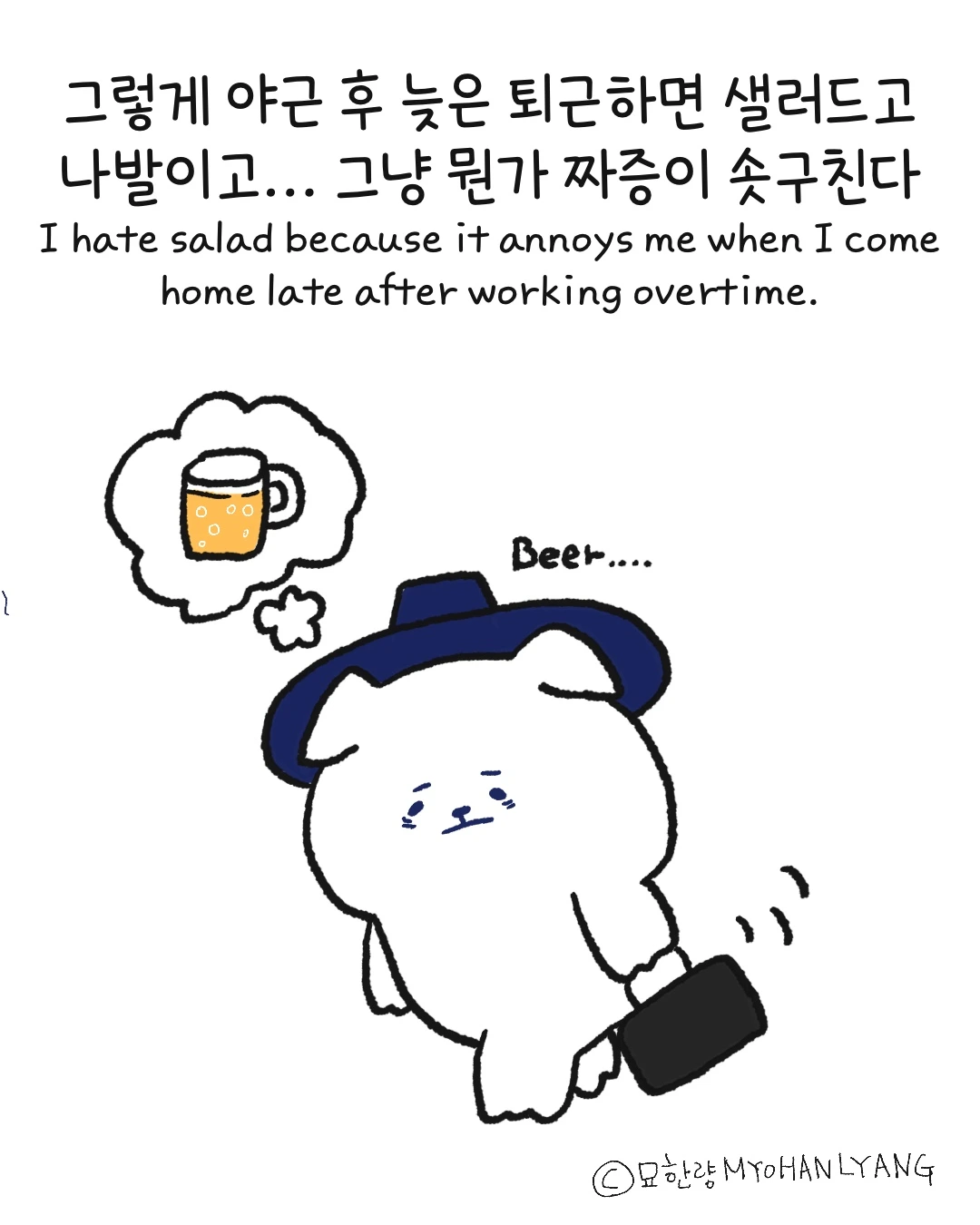 오늘도 ‘아.. 저녁에 꼭 샐러드 먹어야지…’ 하고 생각하지만 막상 저녁시간되면 또 치맥 시키는 나를 발견할 수 있을 것 같습니다.