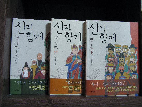 내 책장에 들어온 유일한 만화책이다. 엄밀히 따지자면 최초로 대여점에서 빌려 본 『꽃보다 남자』 마지막 권이 꽂혀있긴 하다. 그러나 온전한 형태로 내 책 꽂이에 자리한 책은 『신과 함께』가 유일하다. 주변에서 재밌다는 평 때문에 들인 책인데, 막상 읽으려고 펼치면서도 반신반의했다. 만화책도 정독하는 스타일이라서 읽는 데 시간이 너무 오래 걸려 회피하고 있던 내게 과연 『신과 함께』는 어떻게 다가올 것인가. 걱정과는 달리 책을 펼치자마자 한 호흡에 마지막 권까지 다 읽고 말았다. 피곤함이 몰려옴에도 무엇에 홀린 듯 새벽 2시까지 쉼 없이 읽어댔다. 역시 정독하고 말았지만 그 시간이 아깝지 않았고, 무엇보다 눈물을 줄줄 흘러 이 기분을 무어라 표현해야 할지 난감했다.