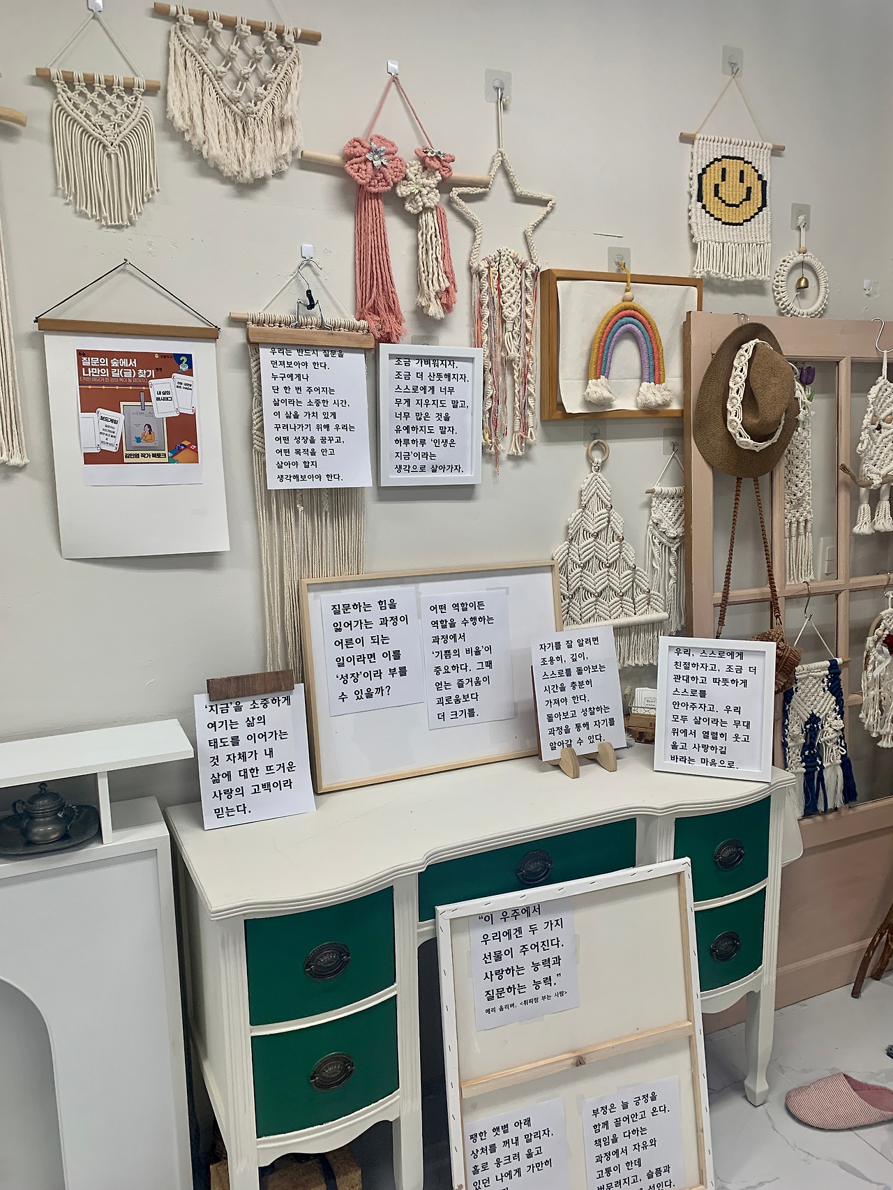 『교사, 넌 오늘도 행복하니』에 공저로 참여한 아람입니다. 진주 보틀북스 책방과 꿈을 하다 마크라메 공방에서 ‘메모’와 글쓰기를 주제로 초대해주셨습니다. 그래서 선생님들과 함께 쓴 책 콘셉트와 연결해 “질문의 숲에서 나만의 길 찾기”라는 주제를 정해보았습니다.