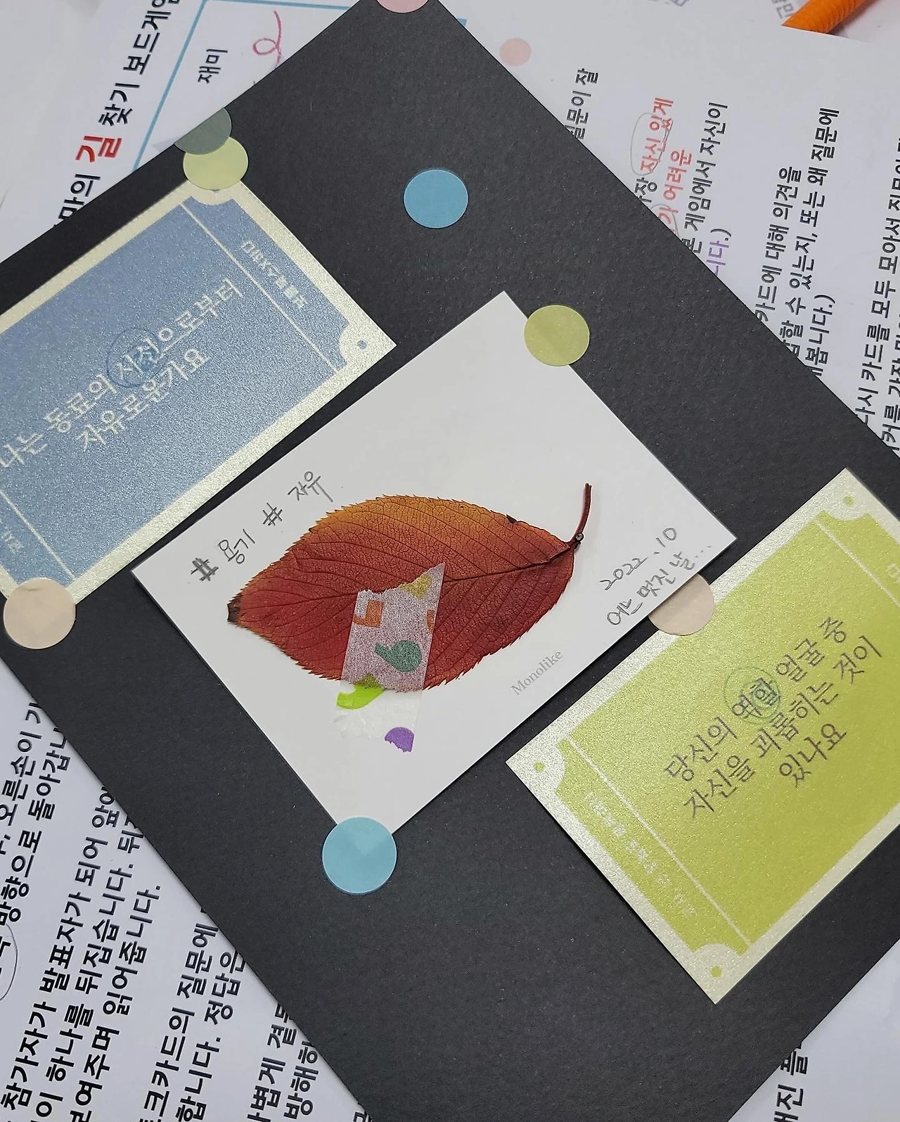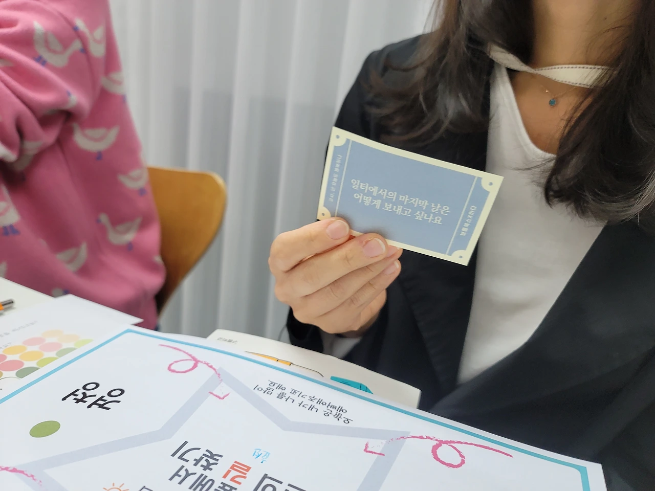 질문카드 중 가장 답하기 쉬운 질문과 가장 답하기 어려운 질문을 골라보고 대화했습니다. 그리고 마지막에는 가장 마음에 품고 가고 싶은 질문카드를 선택했습니다.