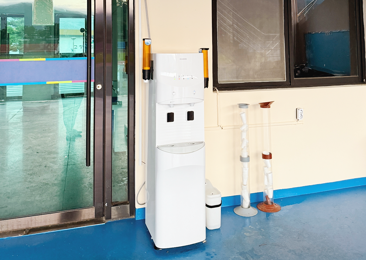 트랙 한쪽에 정수기가 있어,