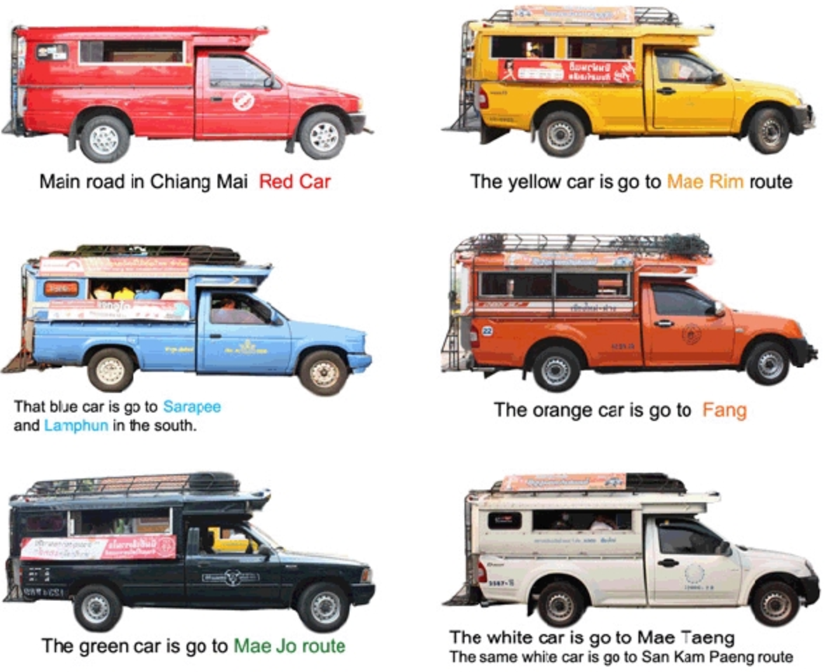 버스와 택시의 결합이라고 보면 된다. 목적지의 방향의 도로에서 탑승하여 내릴 때 돈을 지불한다. 정확한 목적지까지 택시처럼 데려다주지 않고 인근 길에 내려 골목을 찾아가는 방식. 썽태우 역시 현지인 금액과 관광객 금액 차이가 분명 있다. 치앙마이 커뮤니티나 옛날 블로그 글들에는 현지에 오래 산 사람인 척 일정 금액을 내고 쿨하게 내리면 된다고 하는데, 태국어를 못하는 이상 그런 방식은 안 통한다. 또한 우버는 거리당(cf. 러시아워 할증 있는 경우 있음) 금액을 지불하는 반면, 썽태우는 인당 금액을 지불하므로, 여러 명일 때는 더더욱 우버 추천.