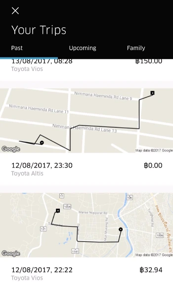 참고로 나는 치앙마이에 거주 시 한 커뮤니티에 추천인 코드를 올렸었는데, 10명이 넘는 분들이 추천인 코드로 가입 후 탑승을 하여 내게 30장 이상의 무료 이용권이 생겼었다. 님만해민 내에서 이동 시 대부분의 거리가 50 baht 이내로 이동 가능했고, 조금 먼 다른 도시나 아무리 막히는 곳을 이용해도 100 baht 이내로 이용했다.