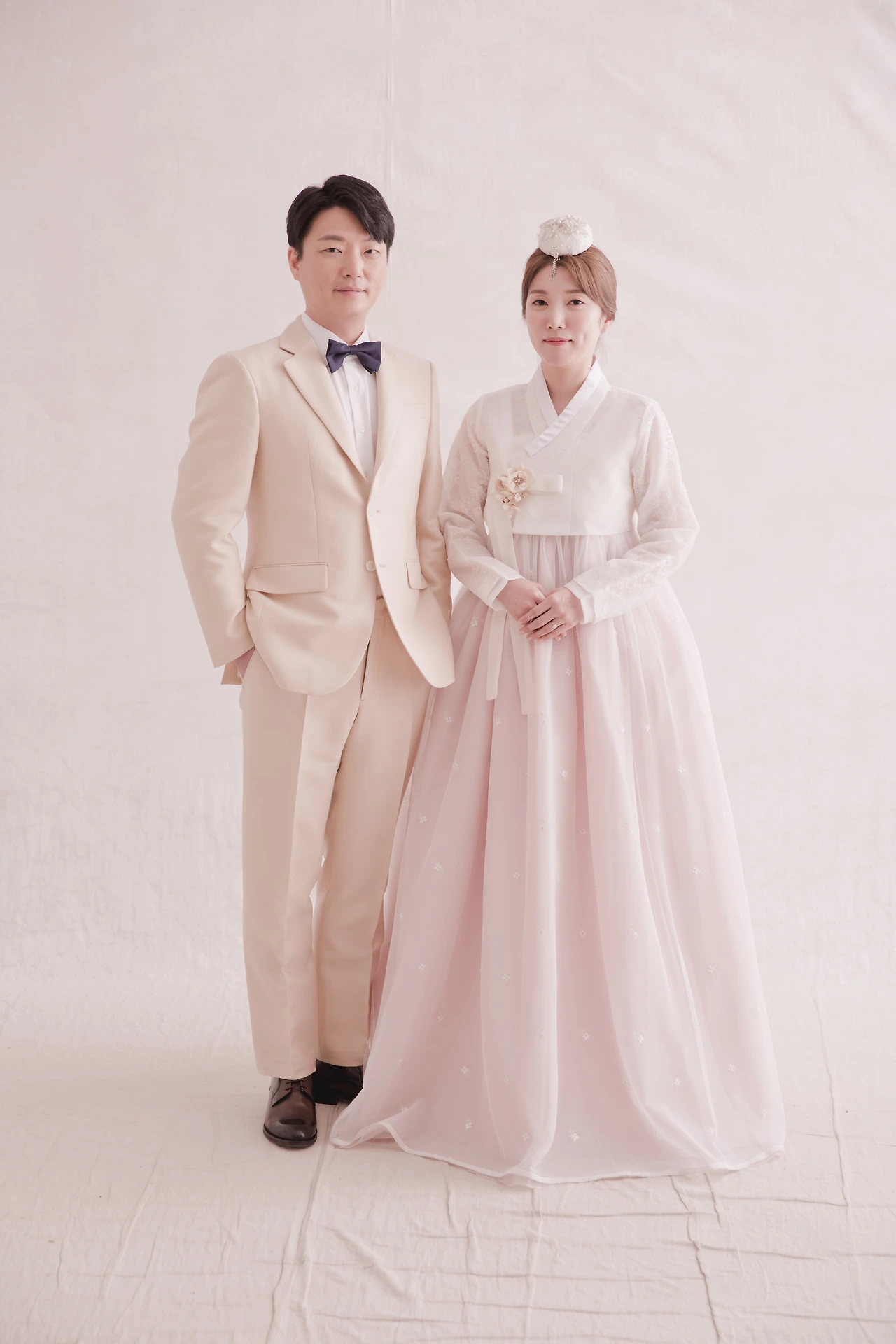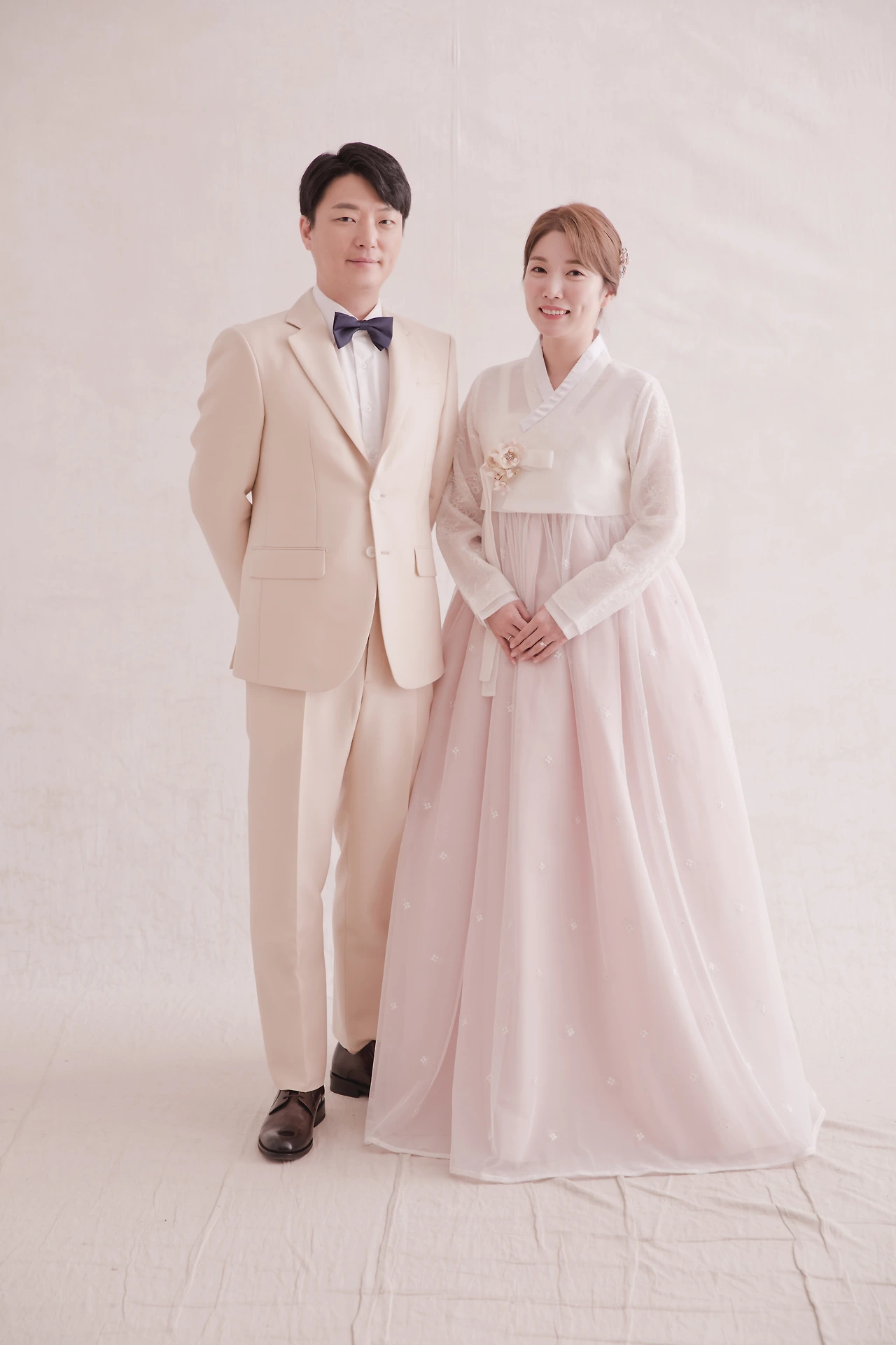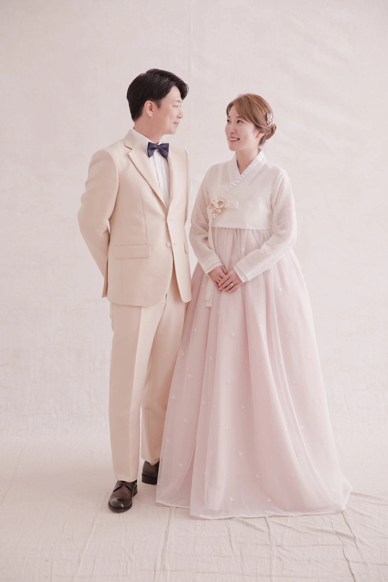 드레스 외 한 벌은 아무래도 결혼사진이다 보니 언제든 찍는 캐주얼 사진보다는 한복 사진이 나을 것 같았다 (우리는 본식 때 폐백도 안 하기 때문에 더욱). 한복 컷에서 신랑은 베이지나 아이보리 같이 밝은 톤의 정장을 입기로 하였고 나는 파스텔톤의 색감 한복을 입기로 정하였다.