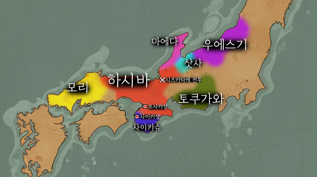 - 사이카슈 : 혼간지와 함께 오다 가문에 10년 넘게 저항했던 사이카슈는 내부 분열을 겪습니다. 사이카슈는 가문이 아닌 무사, 낭인, 승려, 상인, 농민 등 모든 이들이 모여든 단체였고, 이를 지탱하던 두 가문이 있었습니다. 오다 노부나가에게 투항하길 원했던 스즈키 가문과 노부나가와 끝까지 투쟁하려 했던 츠치바시 가문. 사이카슈의 실권을 쥐고 있던 스즈키 시게히데는, 그의 계획에 반대하는 츠치바시 가문의 사람들을 살해하고 오다 가문의 영지로 들어가 버렸습니다.