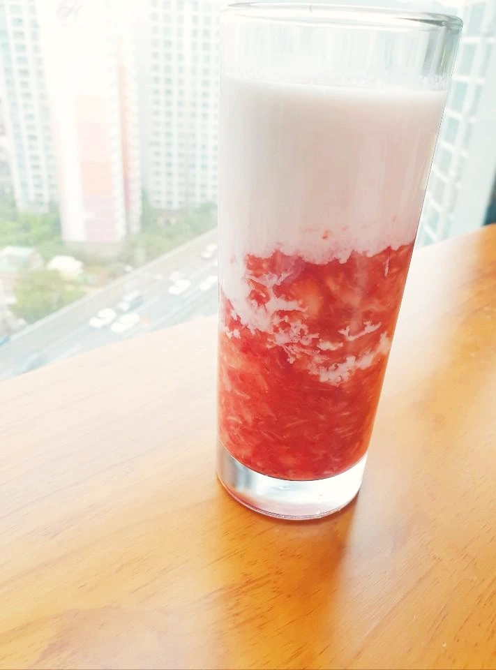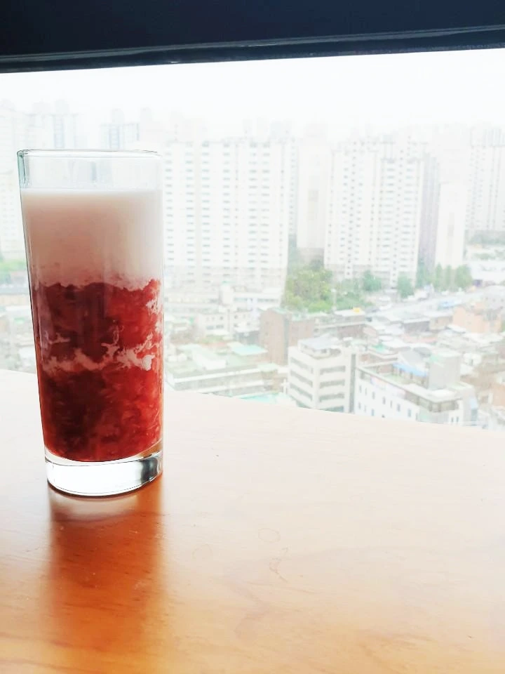 설탕이 잔뜩 들어간 달달한 음료, 혹은 시럽이 첨가된 음료는 주로 내가 마실 것이기보다 타자를 위한 것이다. 타자라고 하기에 미안한 ‘너’들. 피곤할 때, 무료할 때 단 것은 마치 중력처럼 당긴다. 그중에서 딸기라떼는 식사 후에 아이들과 함께 만들어 먹기에 참 좋은 음료다.