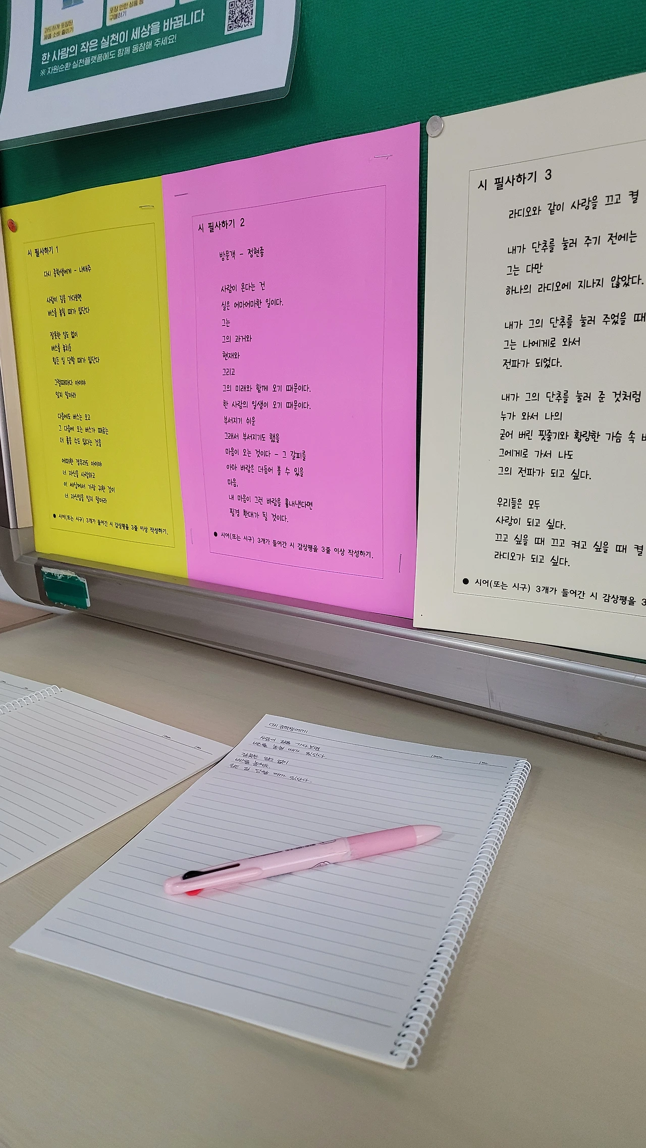 교실 뒤 사물함에서 쓰다 만 흔적.