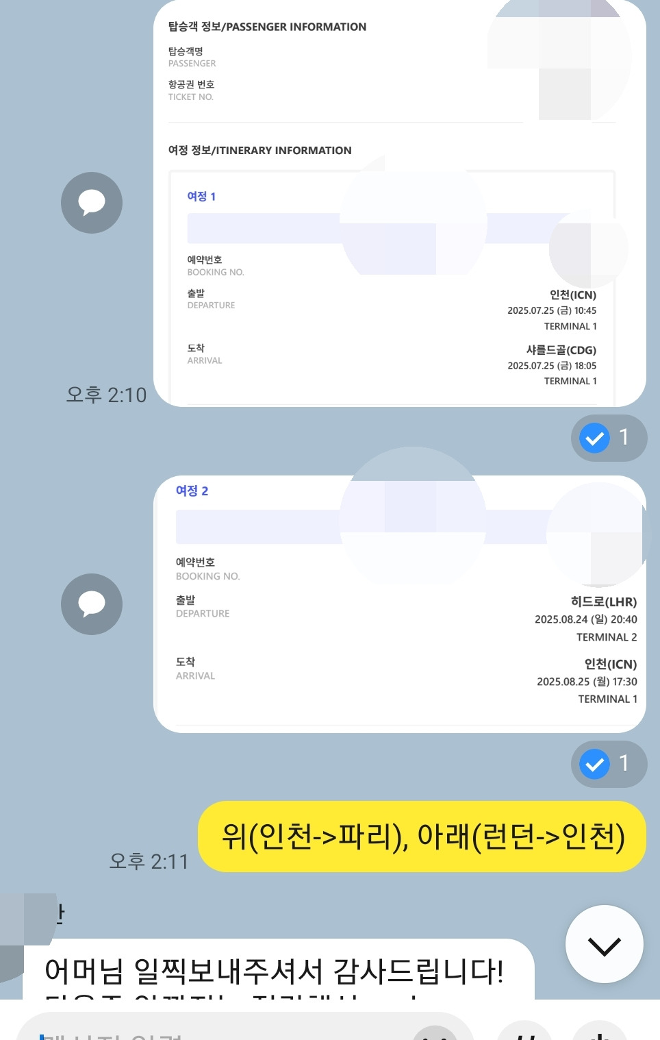 3. 비행기 티켓을 담임선생님에게 확인용으로 보내라.
