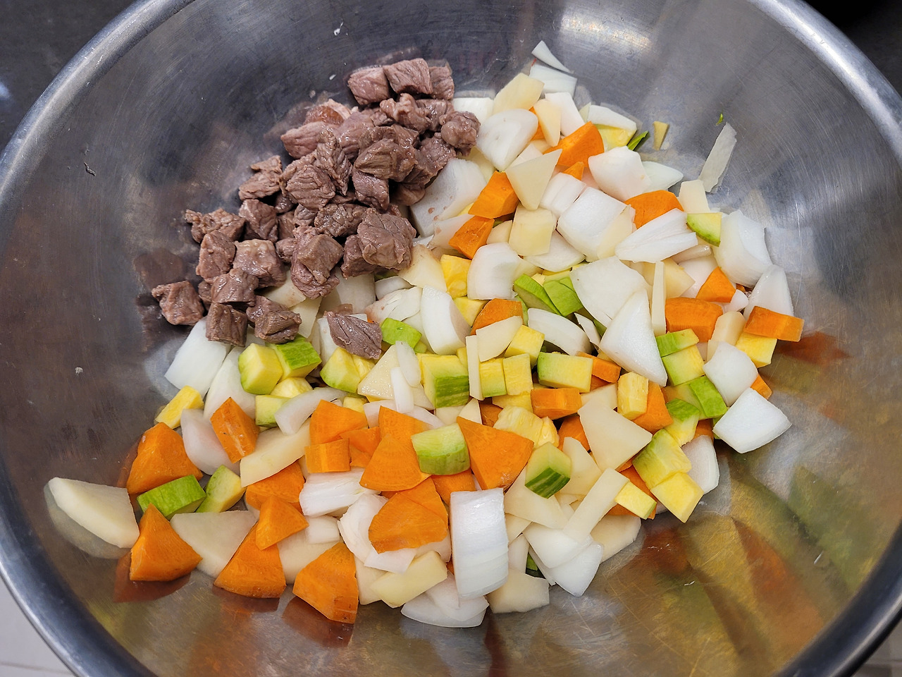 감자. 당근. 양파 등등의 야채를 썰고 있었지.