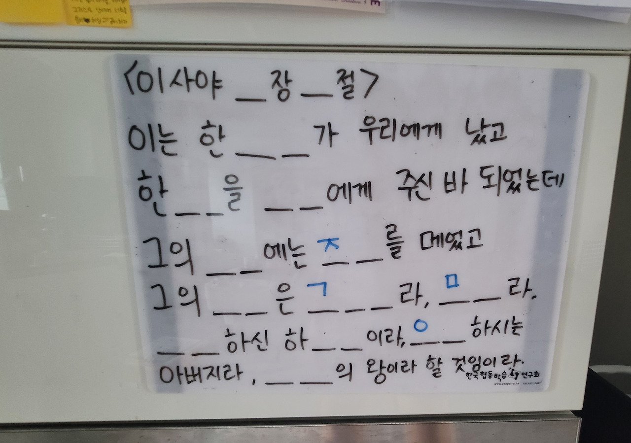 이번 주에 준이가 암송해야 하는 성경구절이 어렵길래