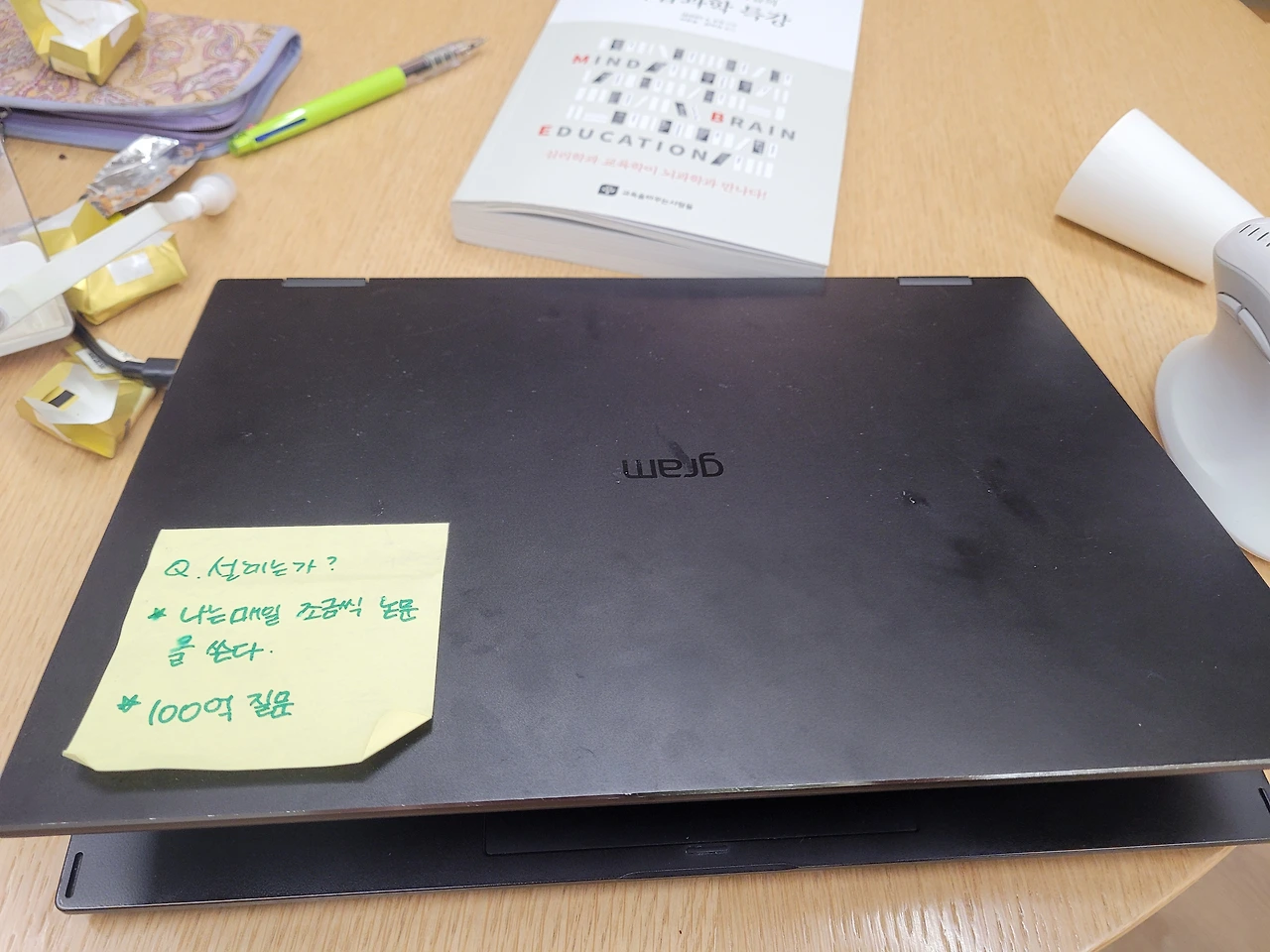 까먹지 않고 싶어서 매일 쓰는 노트북에 써서 붙여놨지!