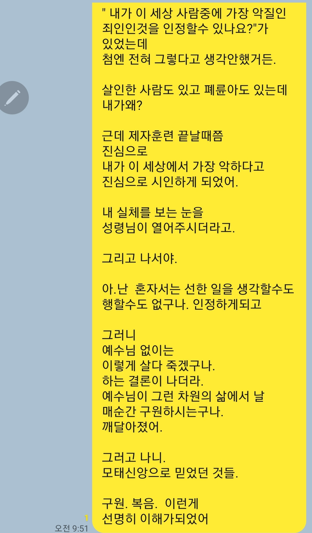진심으로 '구원'에 대해 깨닫게 된 십여년 전의 순간이 떠올랐어.